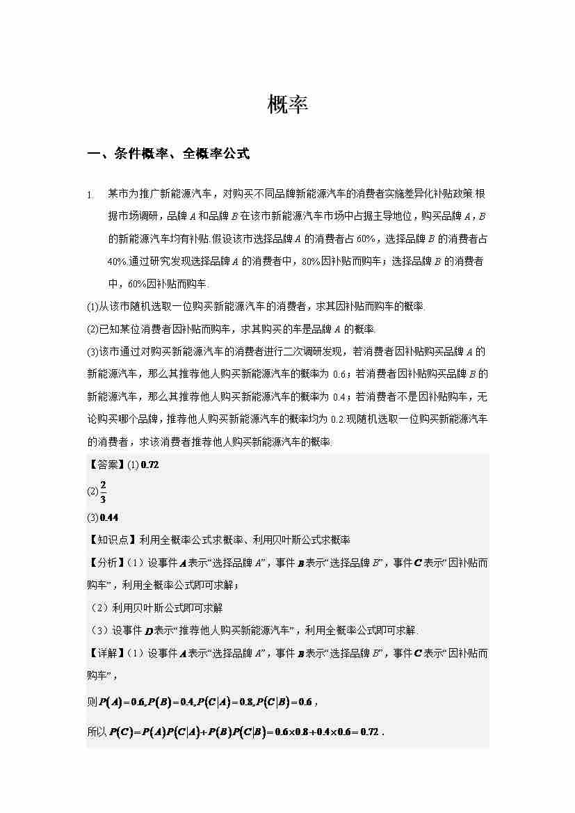 概率解答题专练教师版