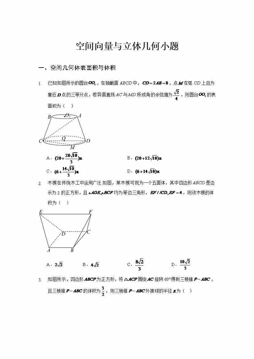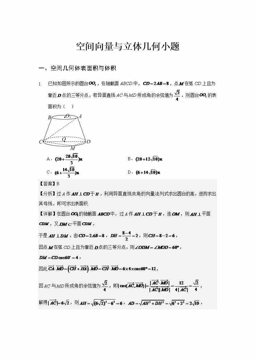 空间向量与立体几何小题专练学生版
