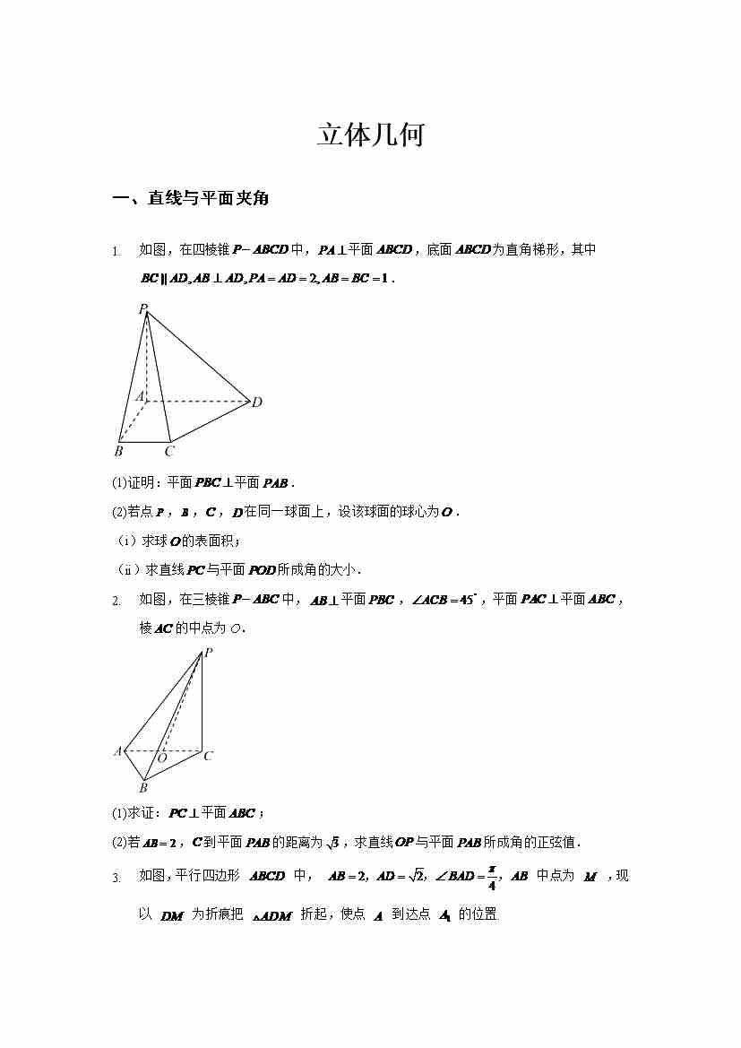 立体几何解答题专练学生版