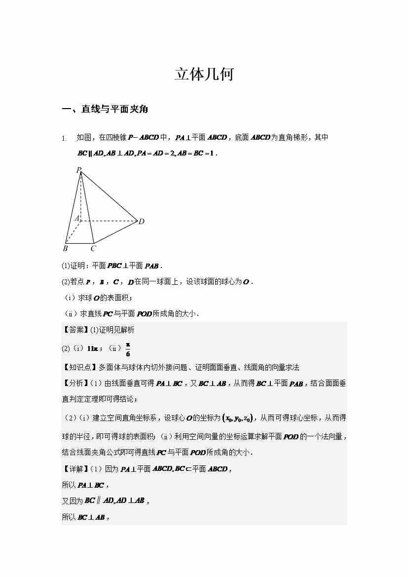 立体几何解答题专练教师版