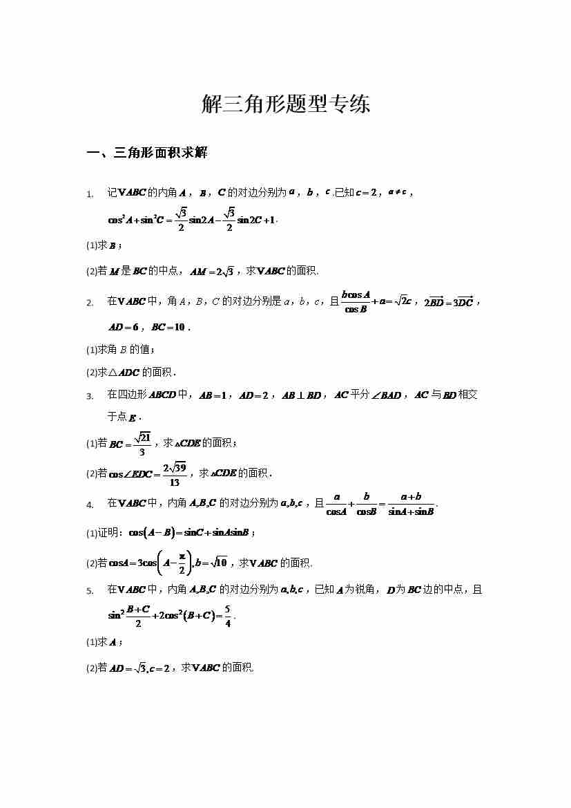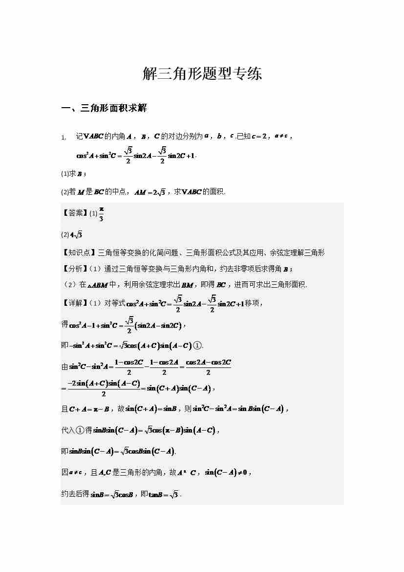 解三角形解答题专练学生版