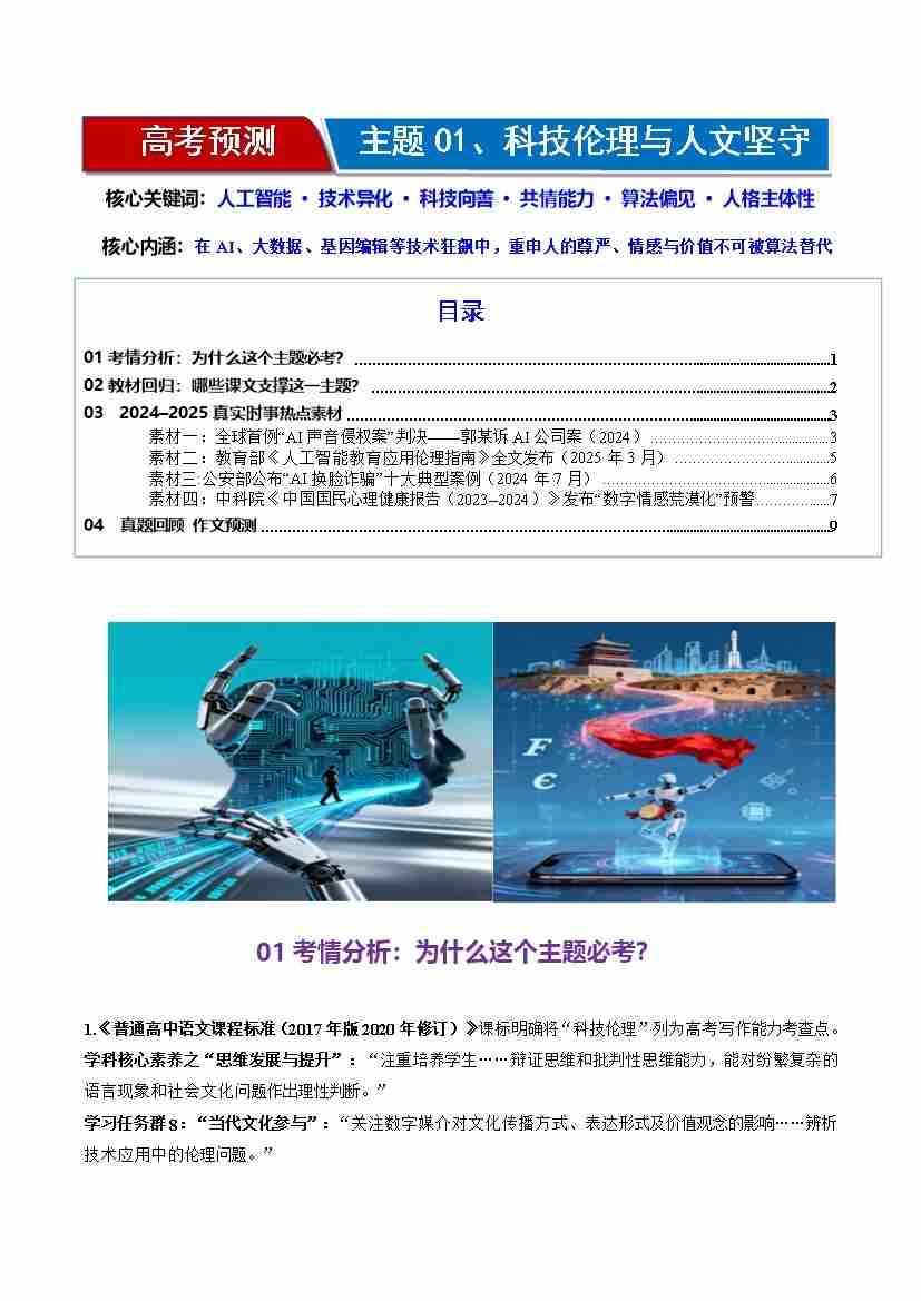 高考作文主题预测01:科技伦理与人文坚守(回归教材、时事热点素材、真题回顾与训练)