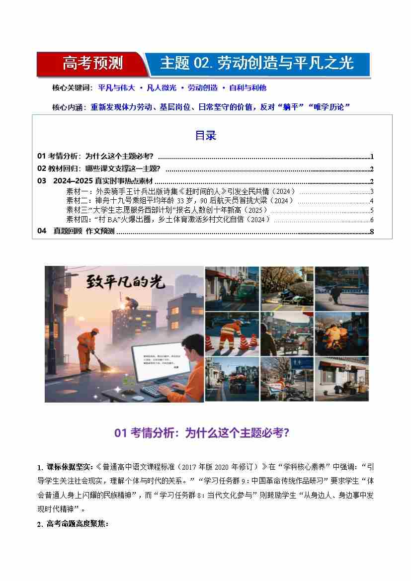 高考作文主题预测02:劳动创造与平凡之光(回归教材、时事热点素材、真题回顾与训练)