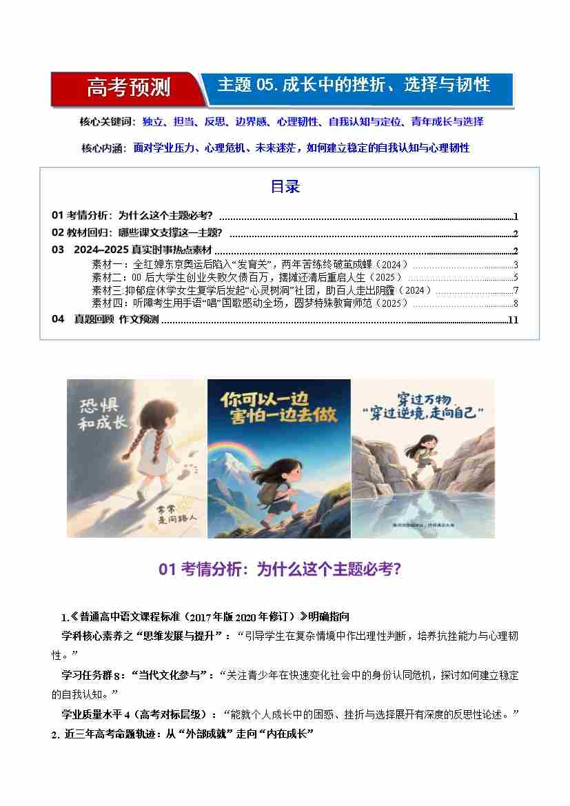 高考作文主题预测05:成长中的挫折、选择与韧性(回归教材、时事热点素材、真题回顾与训练)