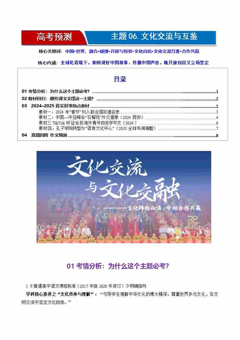 高考作文主题预测06:文化交流与互鉴(回归教材、时事热点素材、真题回顾与训练)