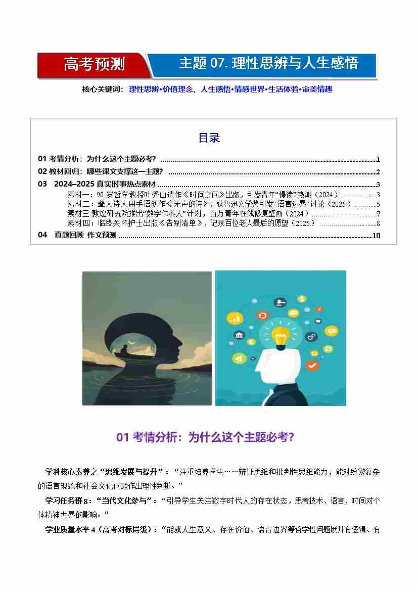 高考作文主题预测07:理性思辨与人生感悟(回归教材、时事热点素材、真题回顾与训练)