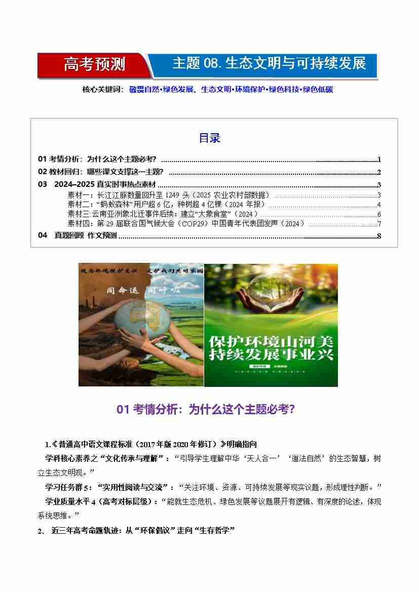 高考作文主题预测08:生态文明与可持续发展(回归教材、时事热点素材、真题回顾与训练)