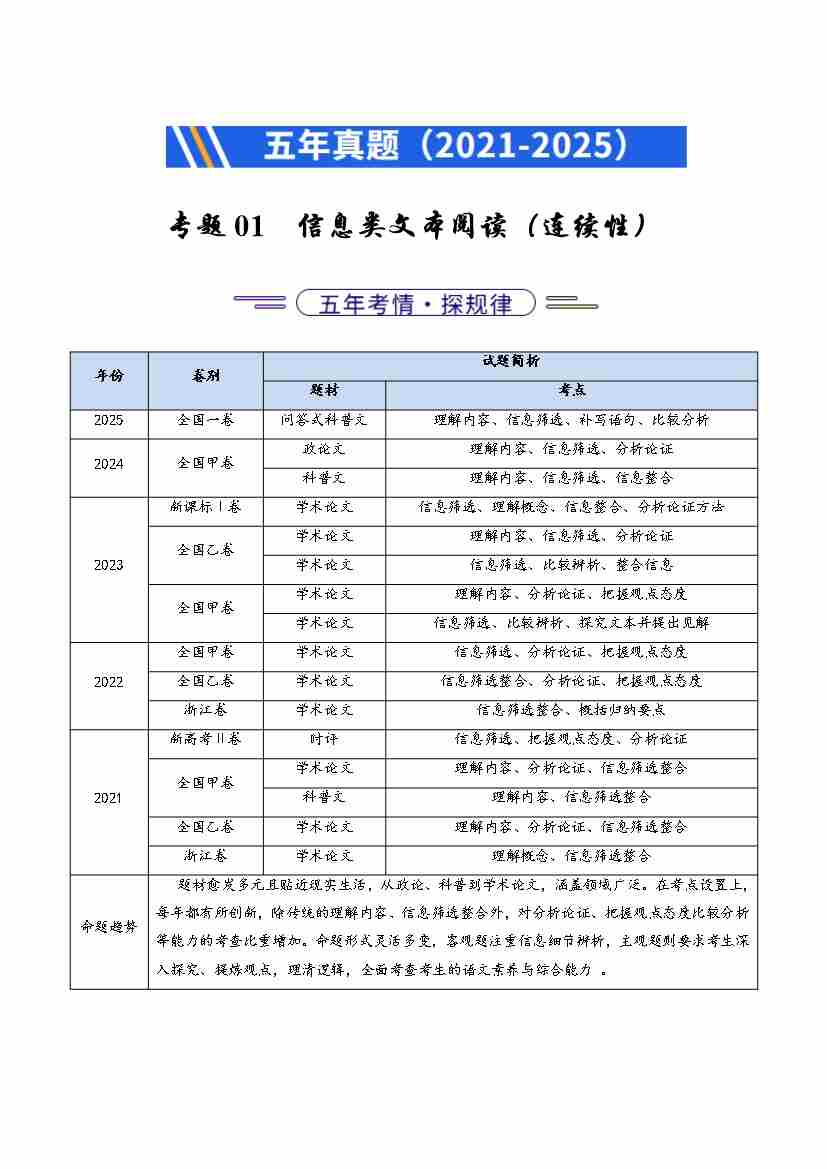 专题01 信息类文本阅读(连续性)(全国通用)(教师版)