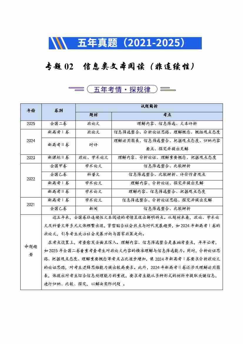 专题02 信息类文本阅读(非连续性)(全国通用)(学生版)