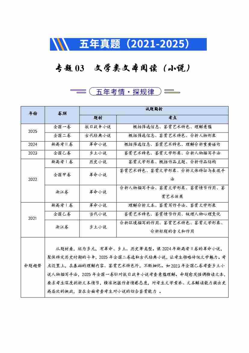 专题03 文学类文本阅读(小说)(全国通用)(教师版)