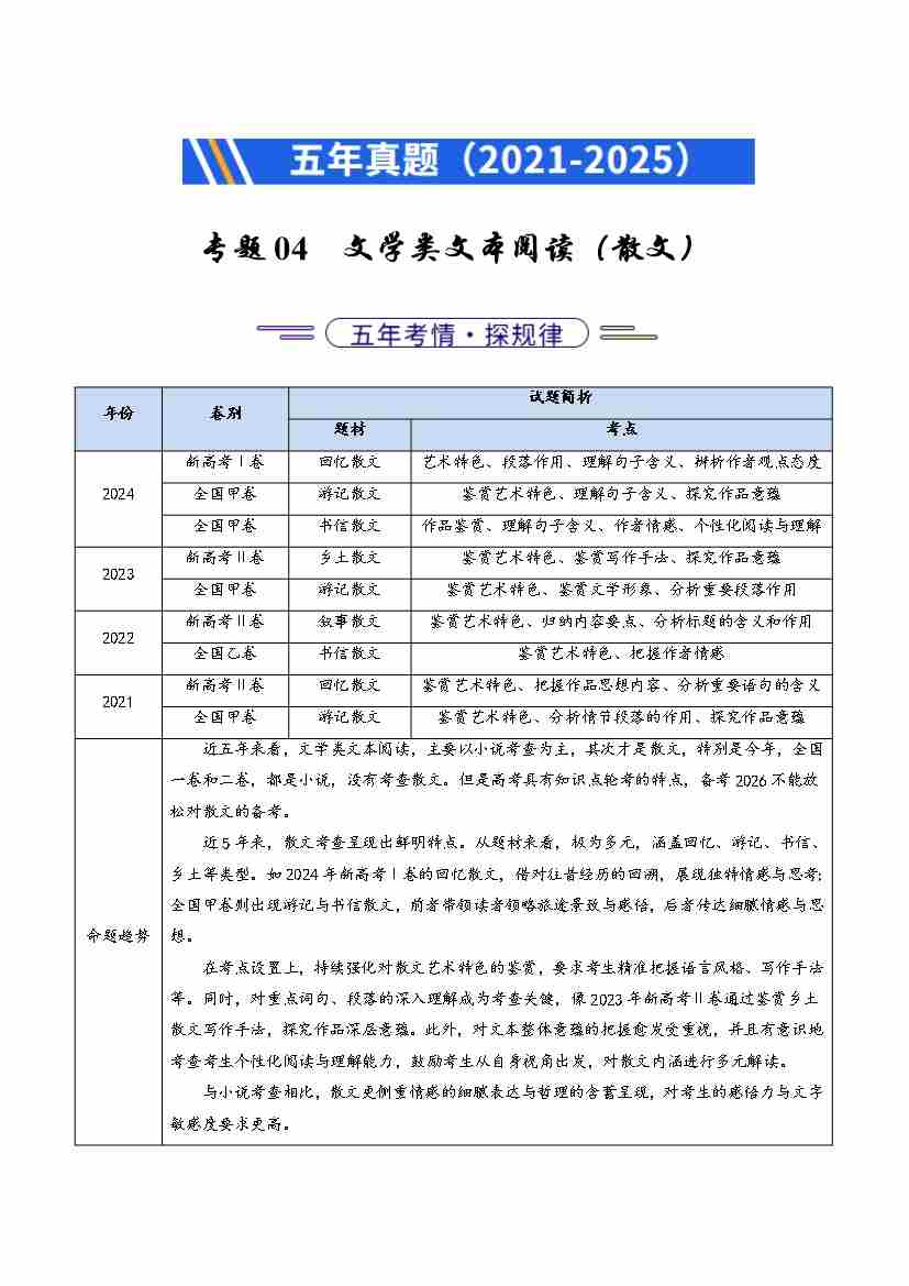 专题04 文学类文本阅读(散文)(全国通用)(学生版)