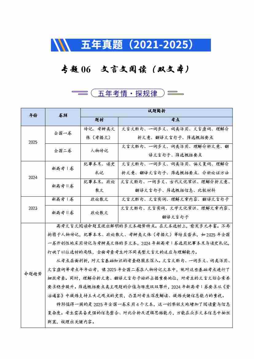 专题06 文言文阅读(双文本)(全国通用)(学生版)
