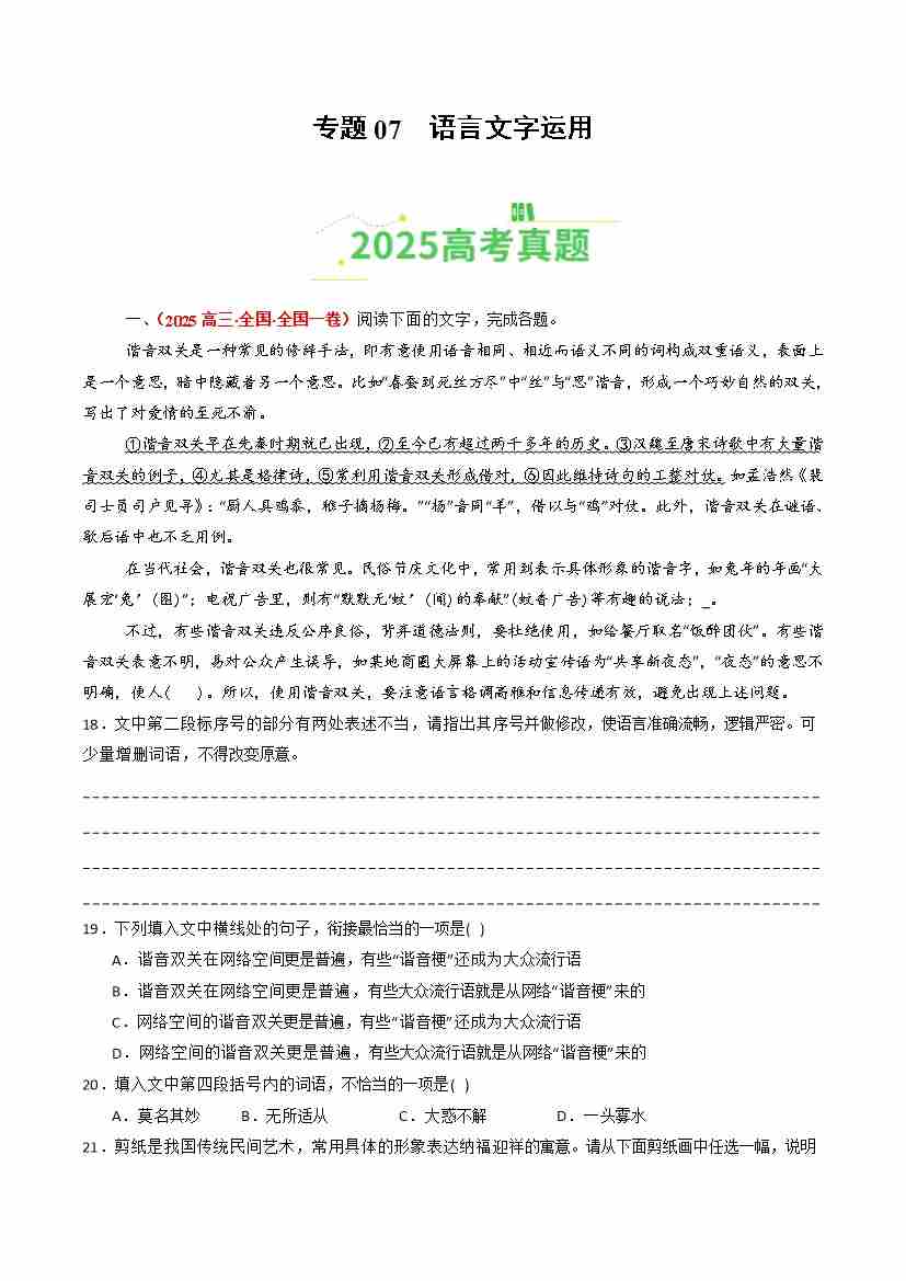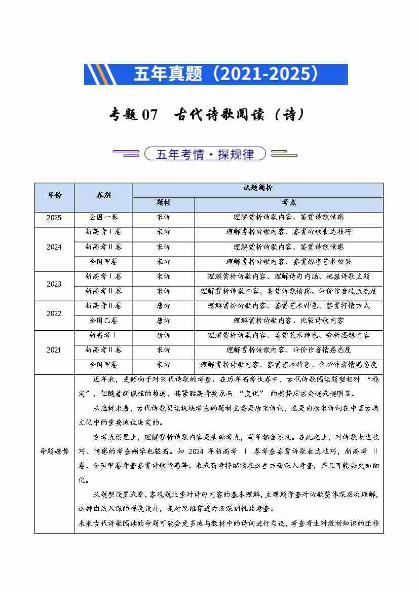 专题07 古代诗歌阅读(诗)(全国通用)(学生版)