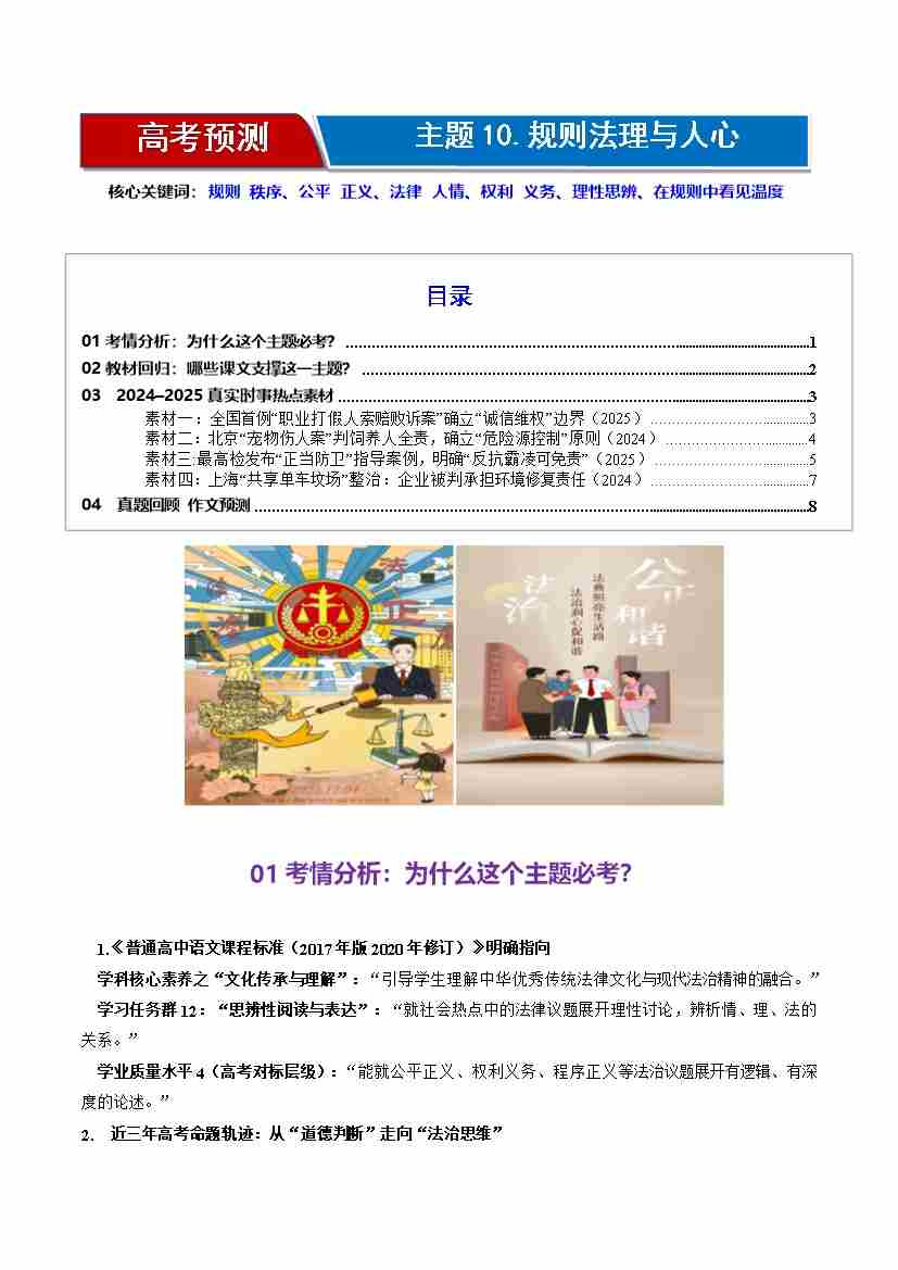 高考作文主题预测10:规则法理与人心(回归教材、时事热点素材、真题回顾与训练)