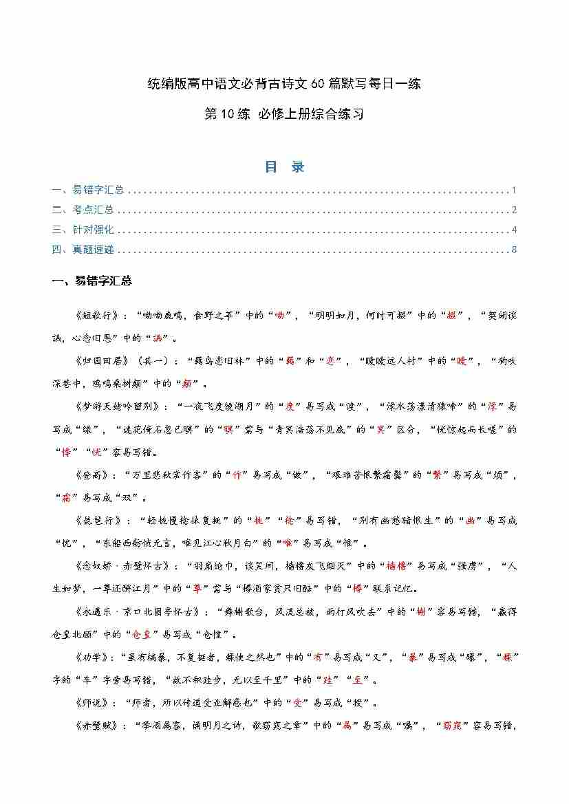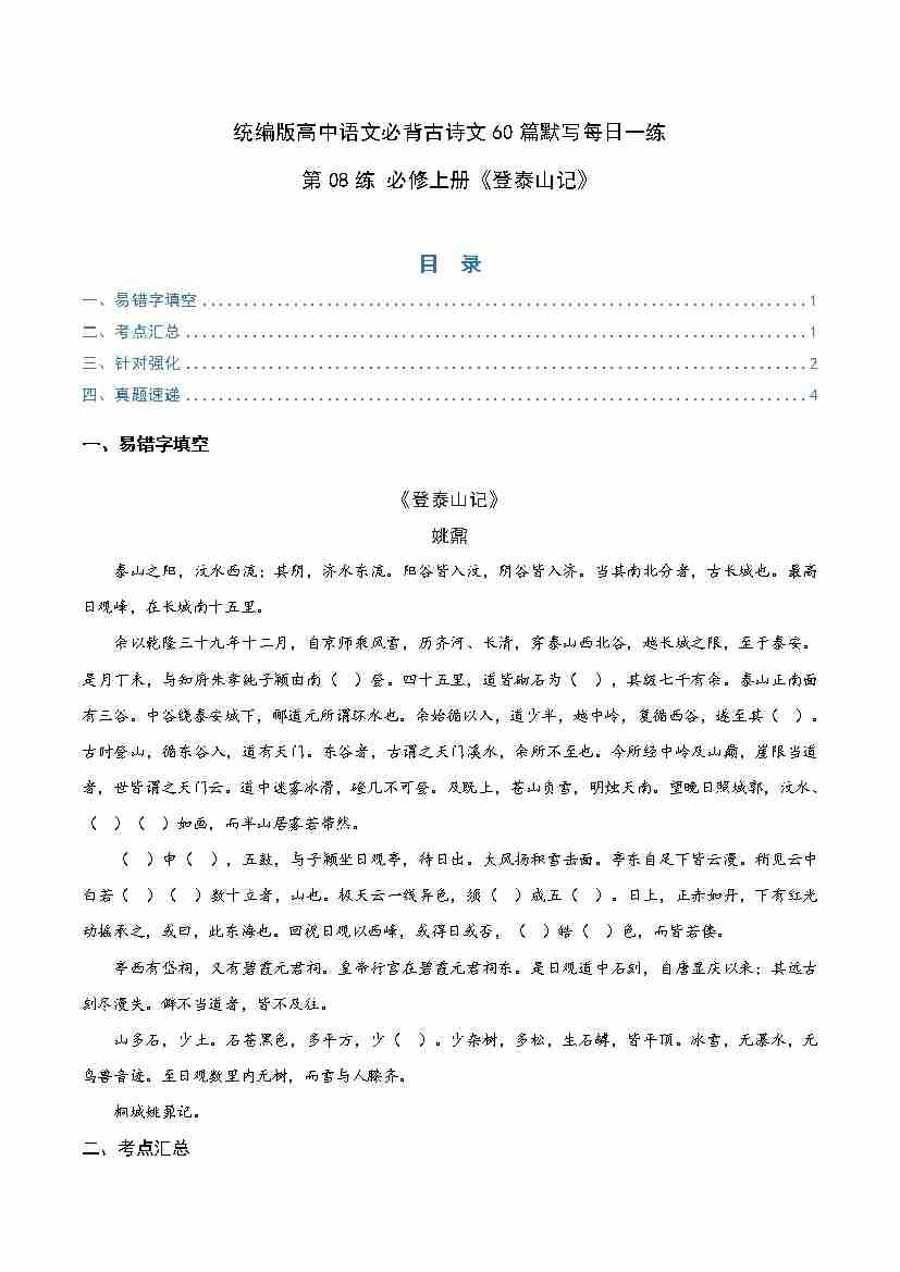 第08练 必修上册《登泰山记》理解性默写(学生版)