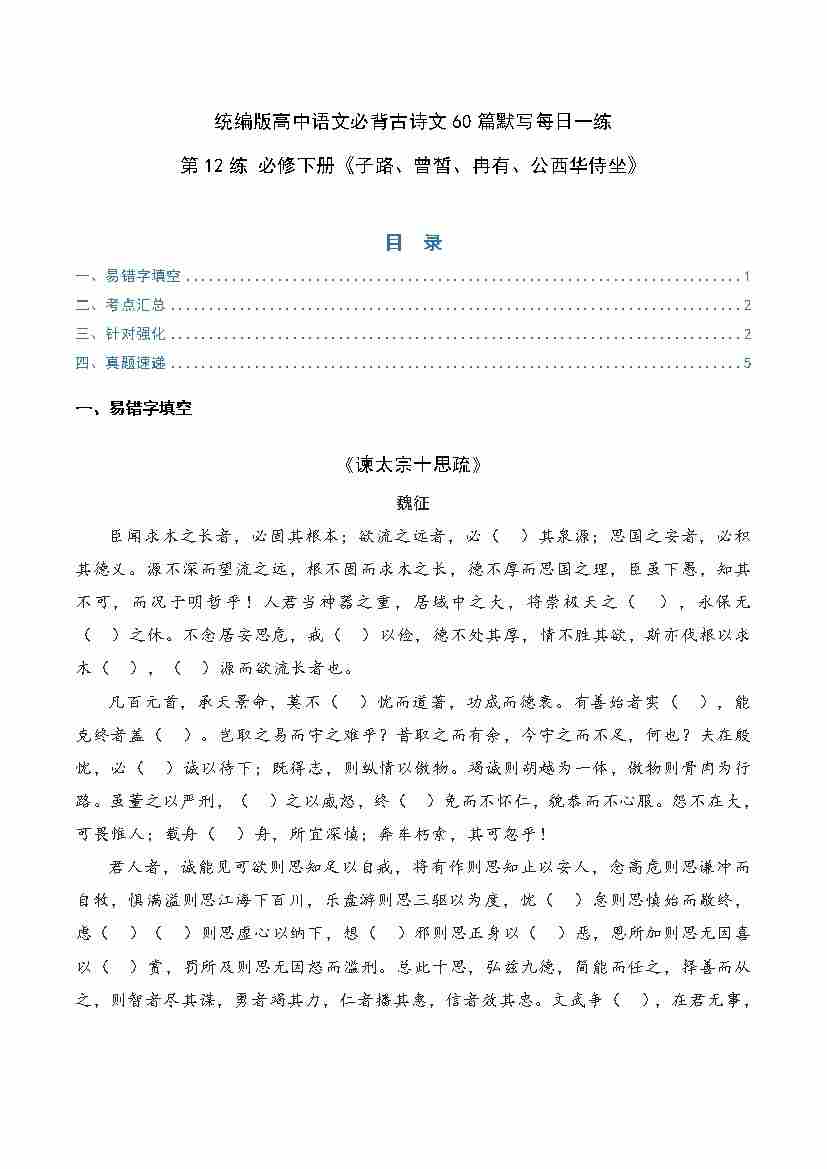 第12练必修下册《谏太宗十思疏》理解性默写(学生版)