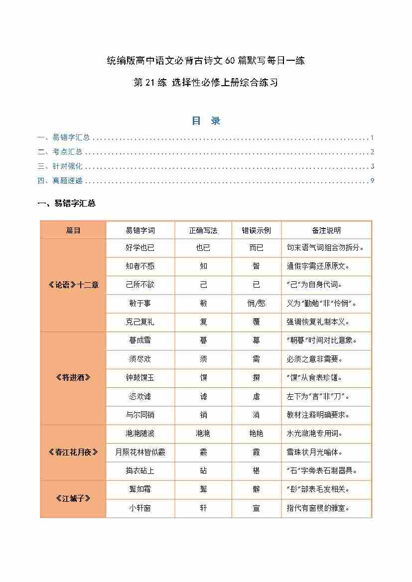 第21练 选择性必修上册综合理解性默写(学生版)