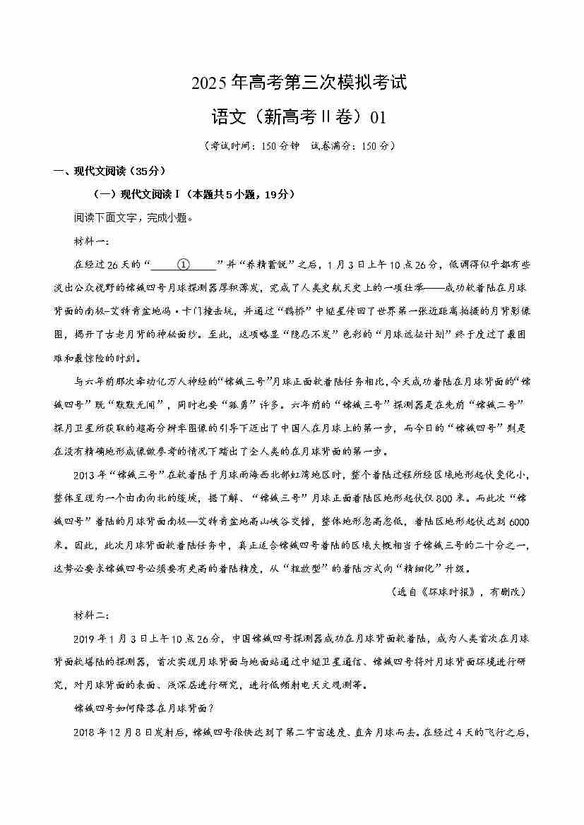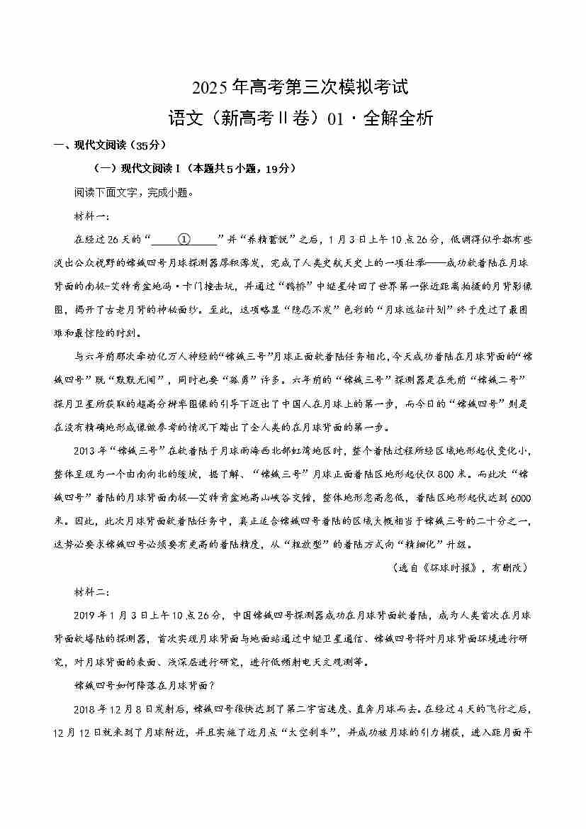 语文(新高考Ⅱ卷01)(考试版