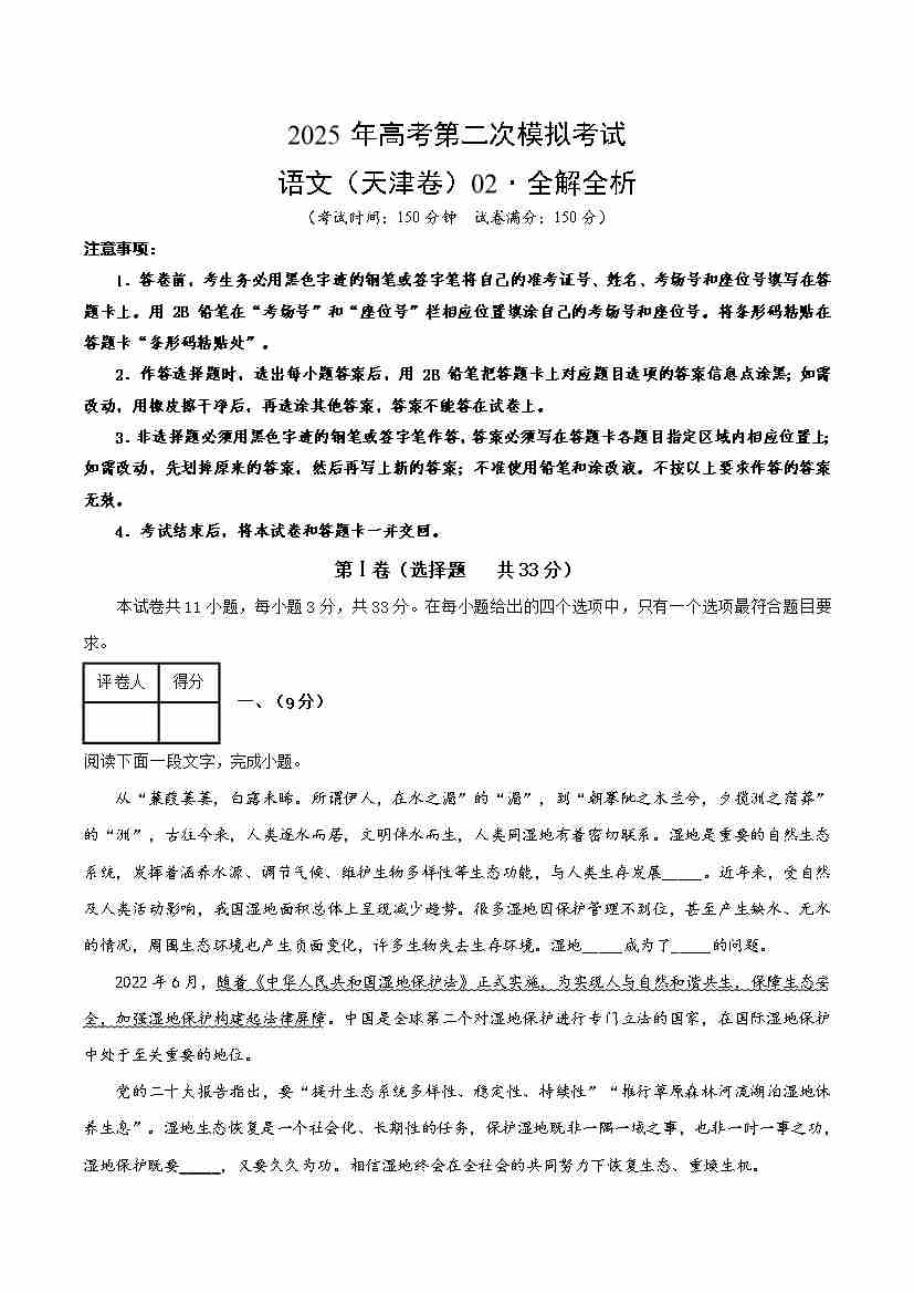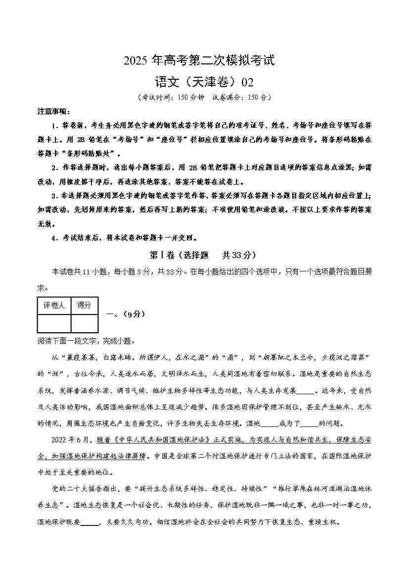 语文02(天津卷)(考试版A4)