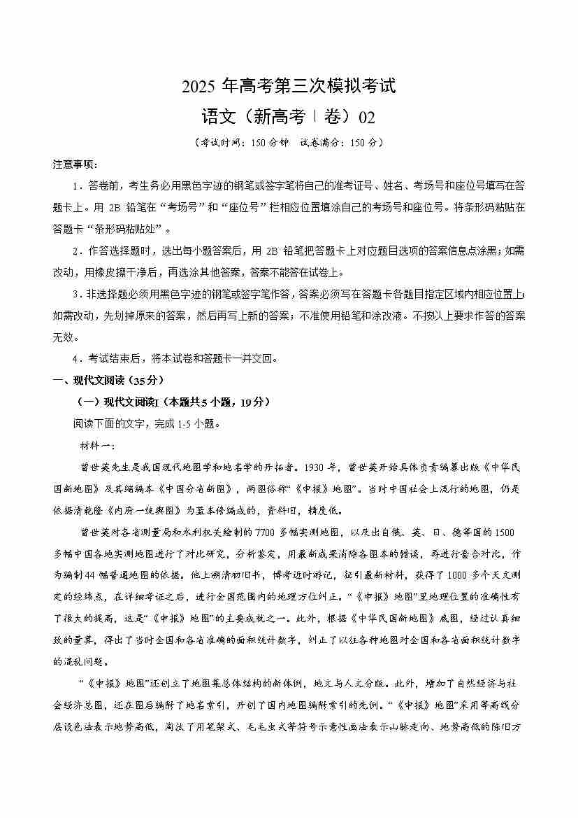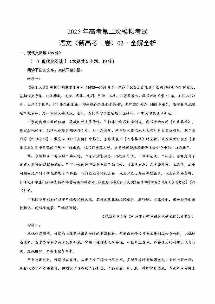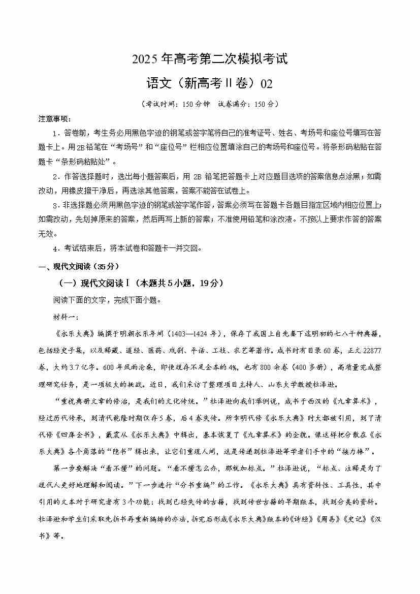 语文(新高考Ⅱ卷02)(考试版)