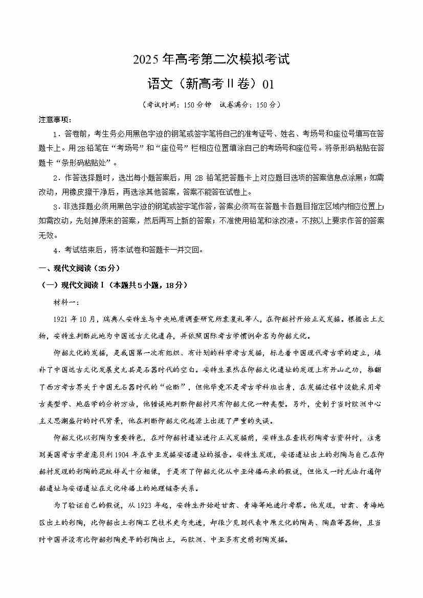 语文(新高考Ⅱ卷01)(考试版)