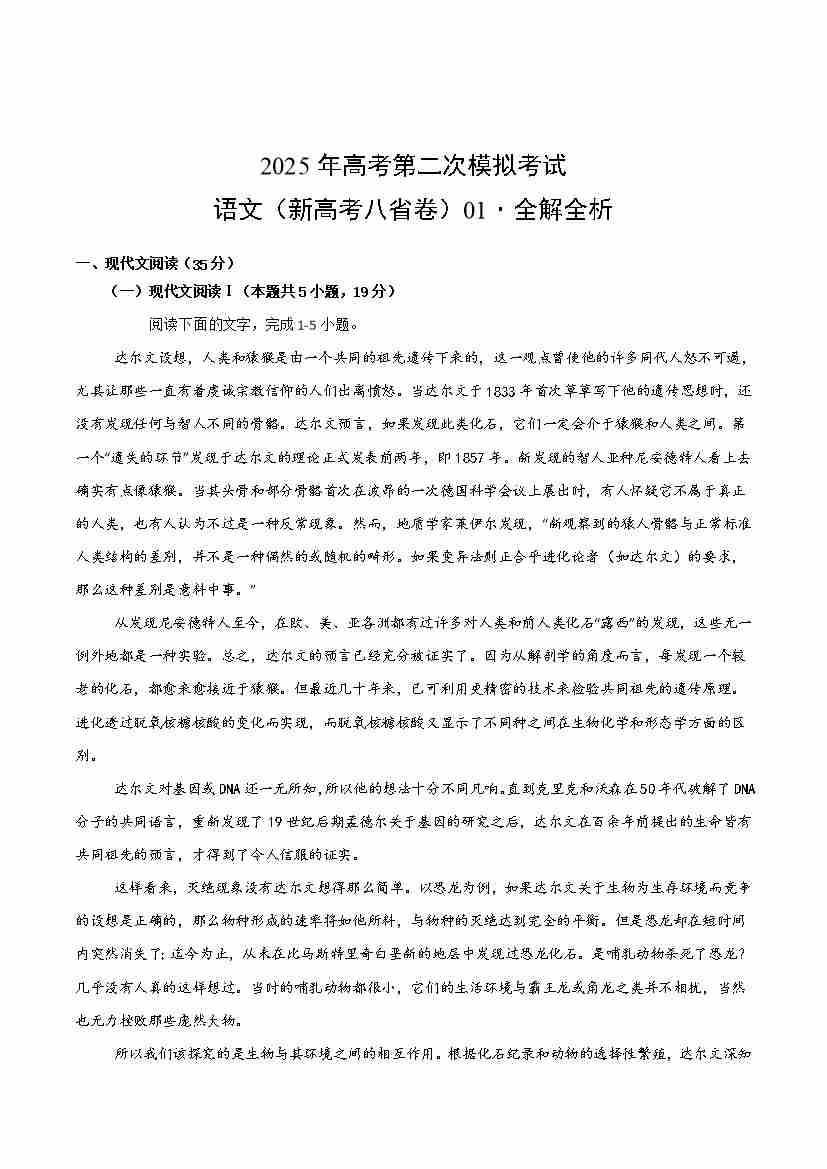语文(新高考八省卷01)(全解全析)