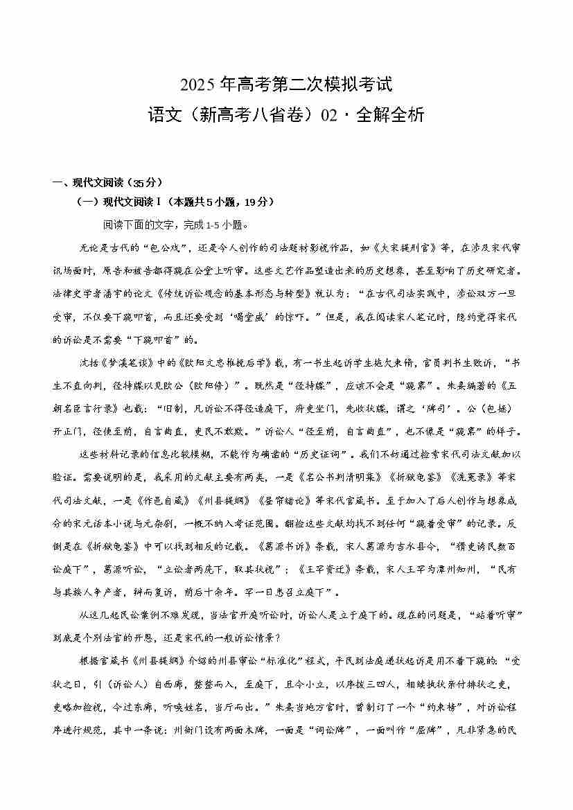 语文(新高考八省卷02)(全解全析)