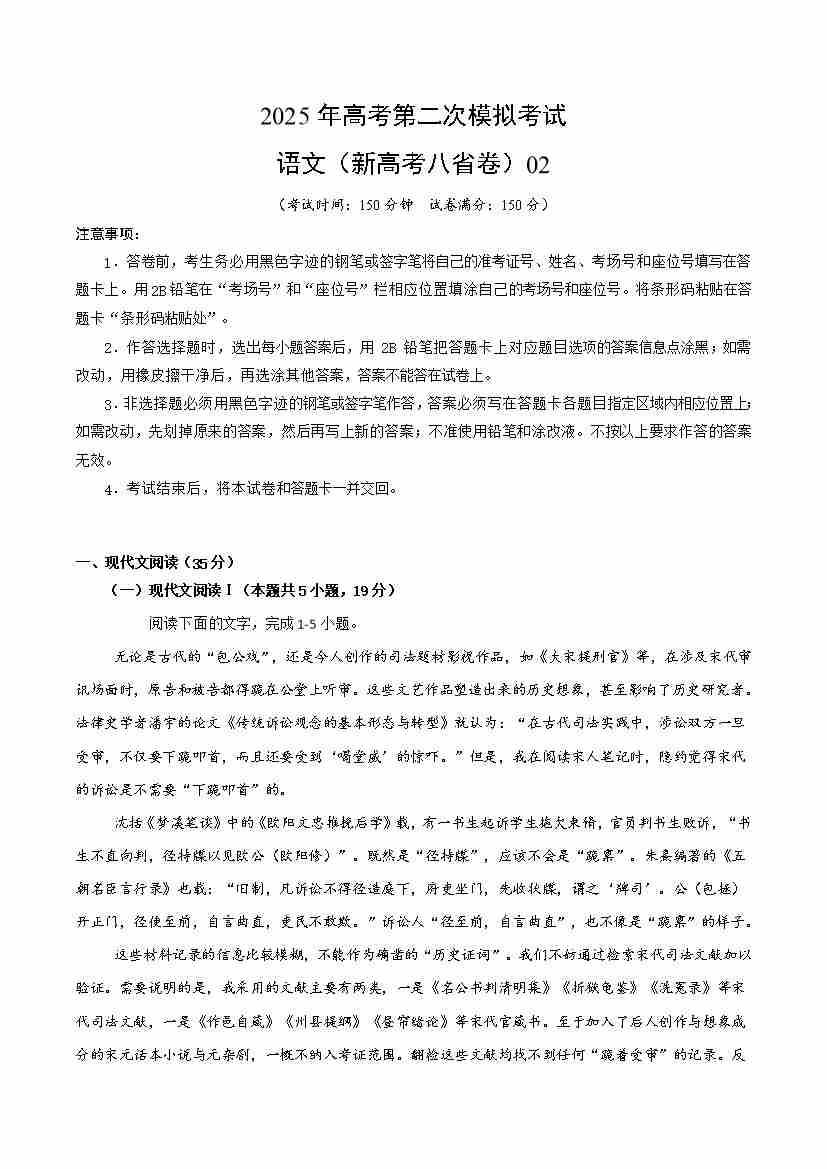 语文(新高考八省卷02)(考试版)