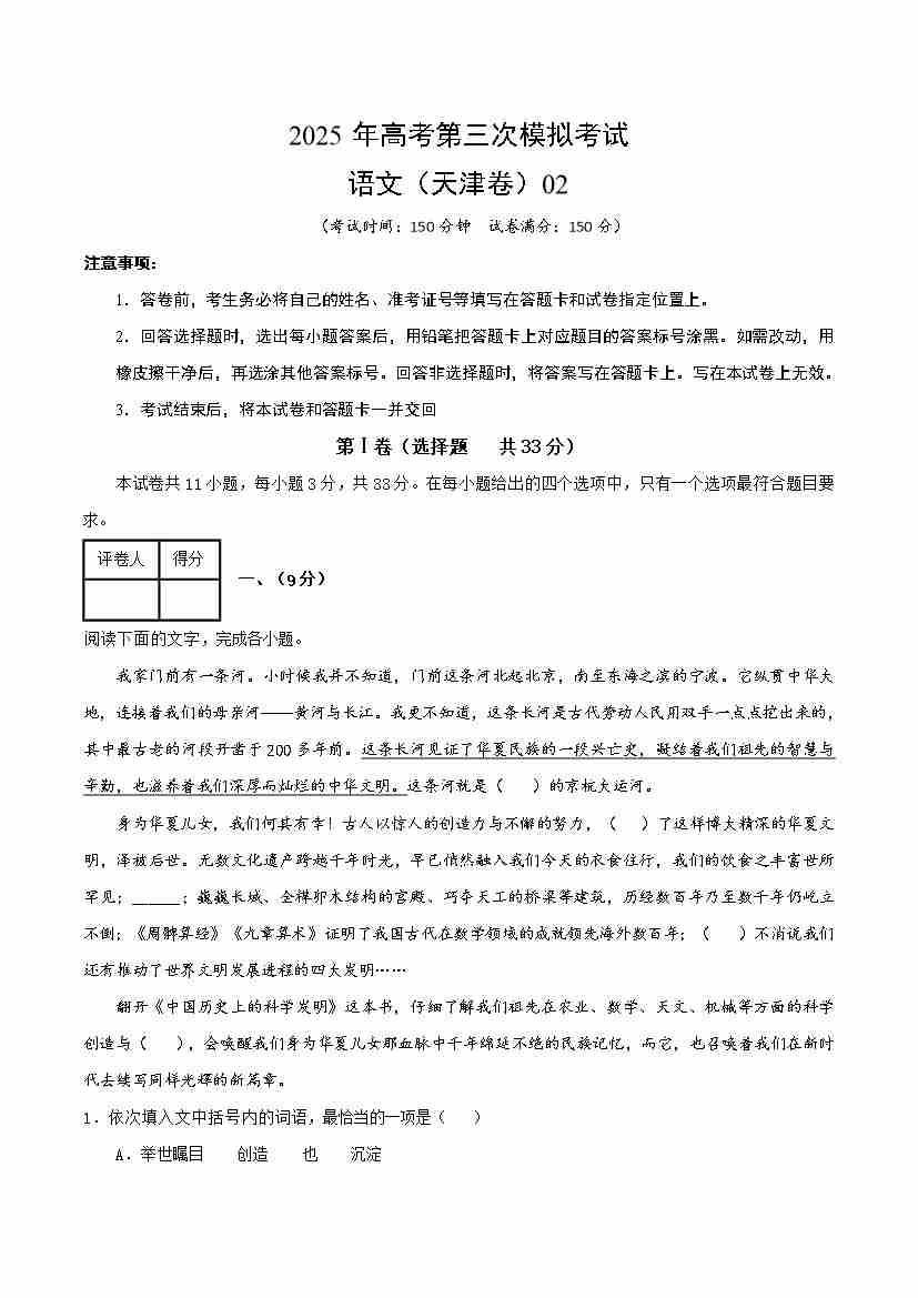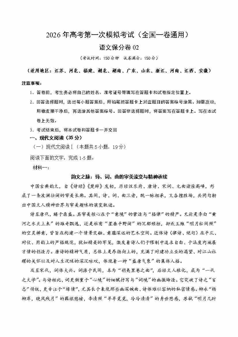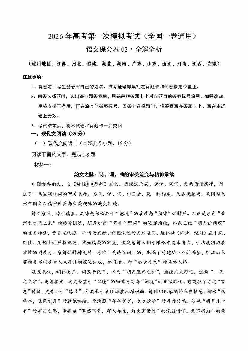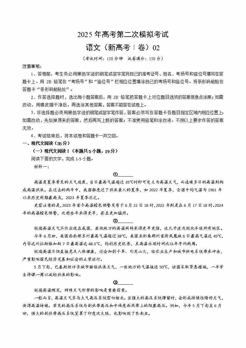 语文一模保分卷02(全国一卷通用)(考试版A4)