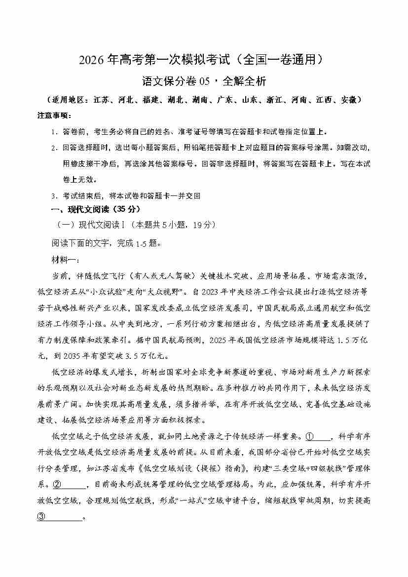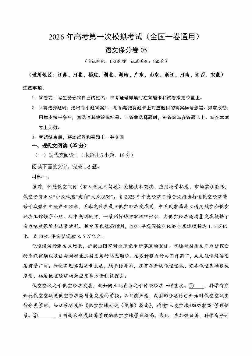 语文一模保分卷05(全国一卷通用)(考试版A4)