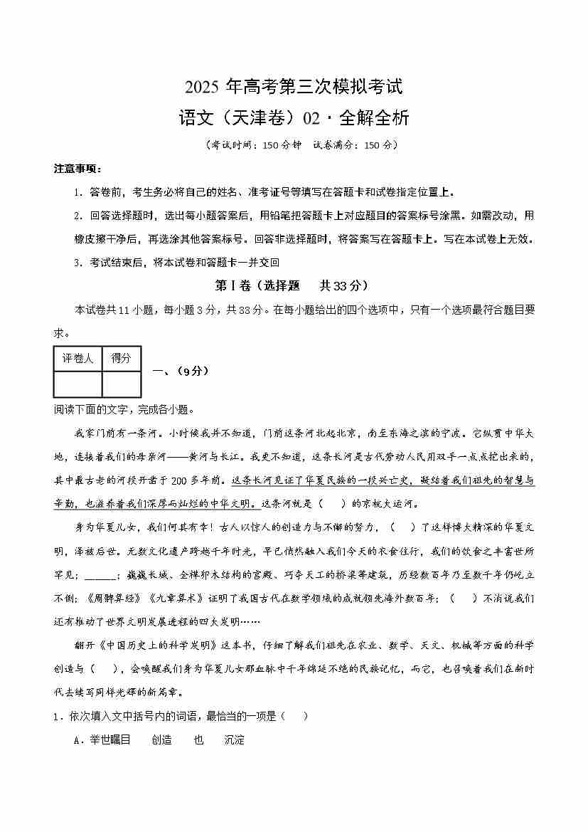 语文一模保分卷02(全国一卷通用)(全解全析)