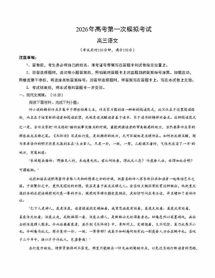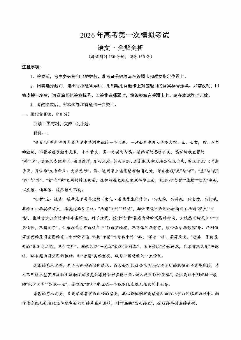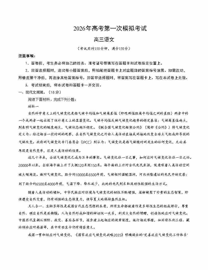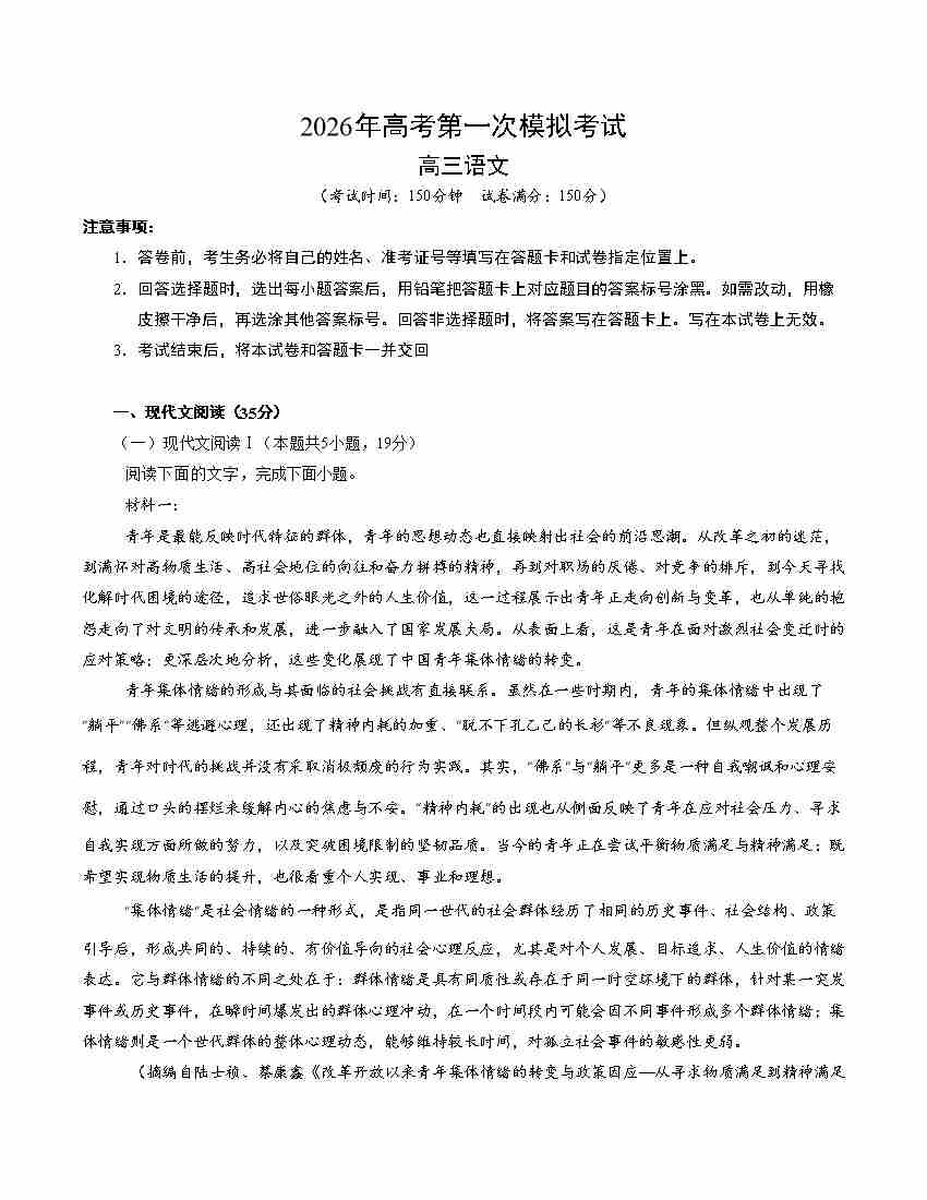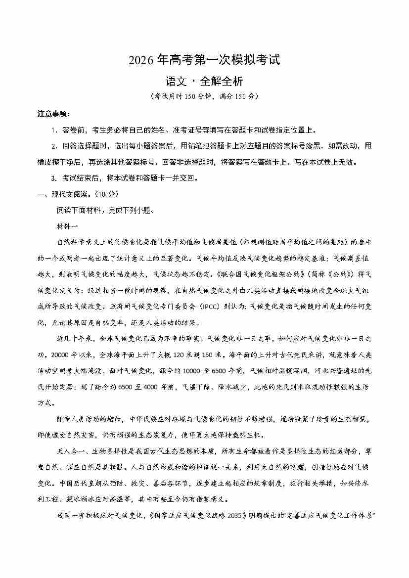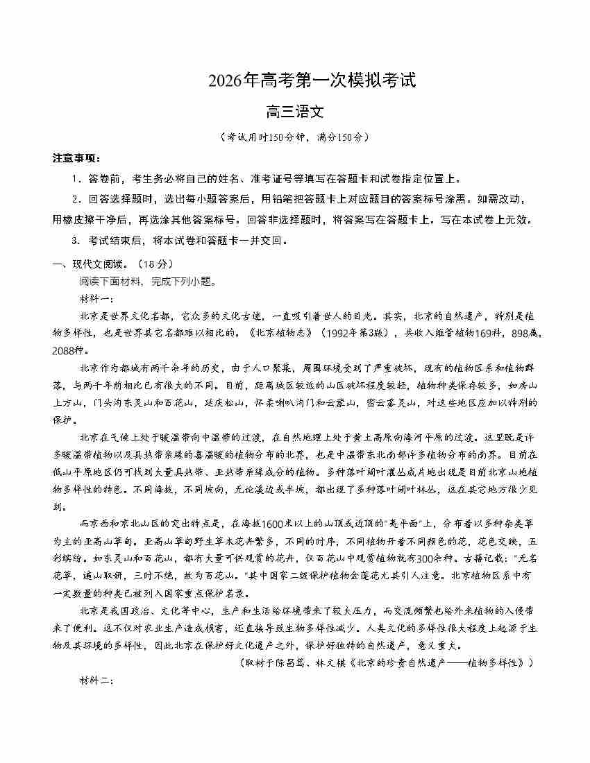 语文一模保分卷02(北京专用)(考试版A4)