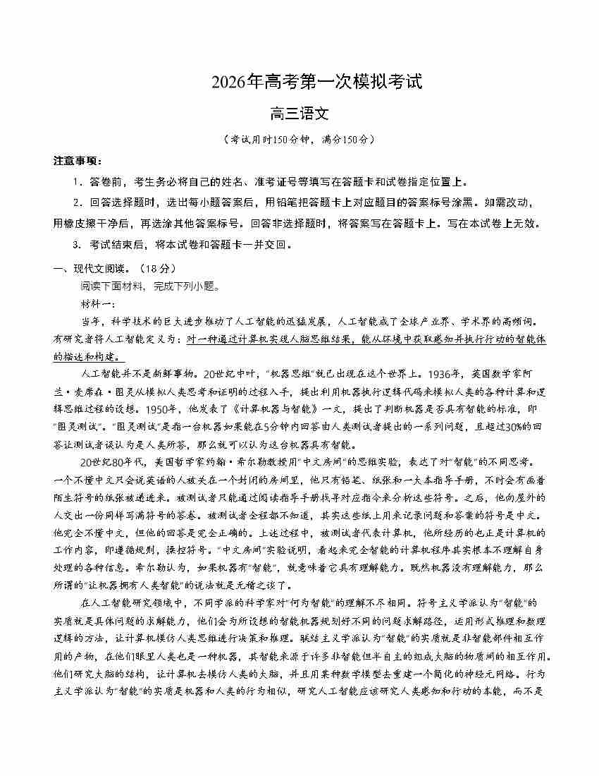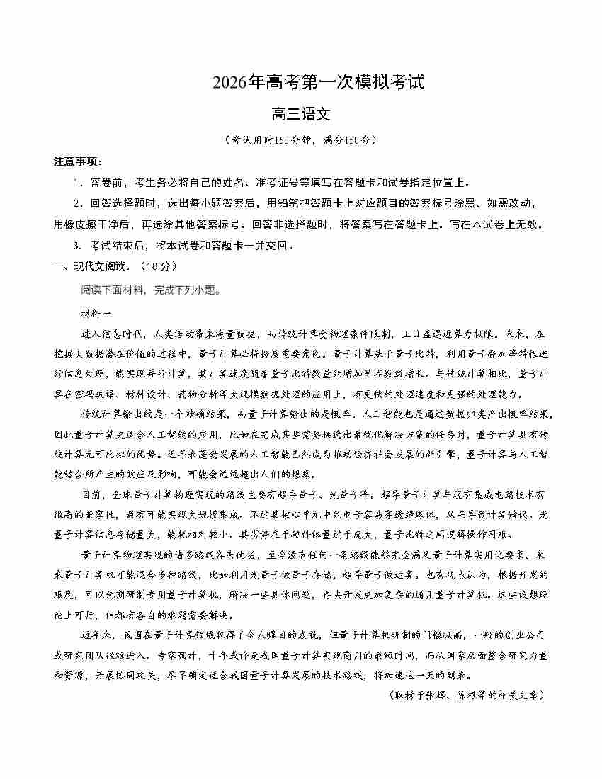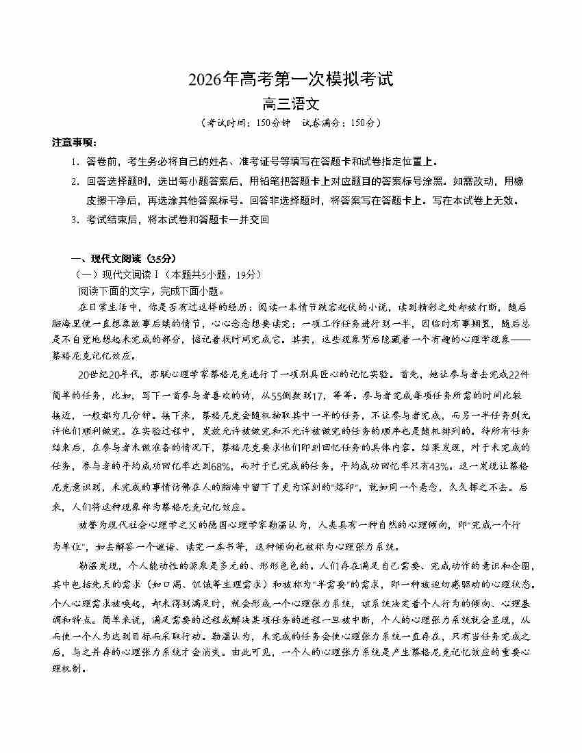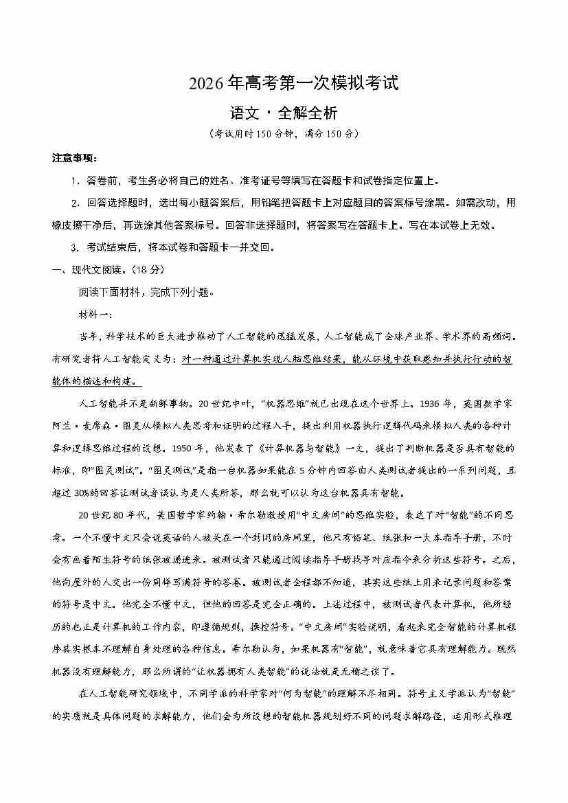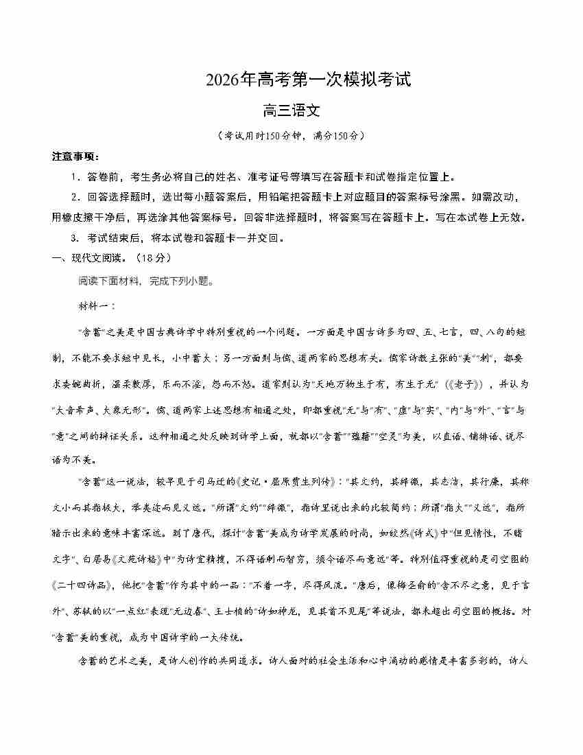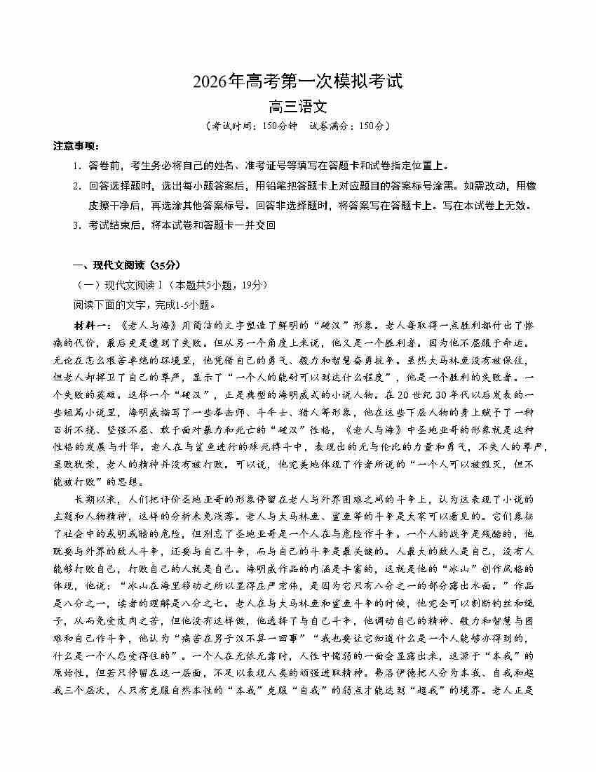 语文一模保分卷02(北京专用)(考试版A4)