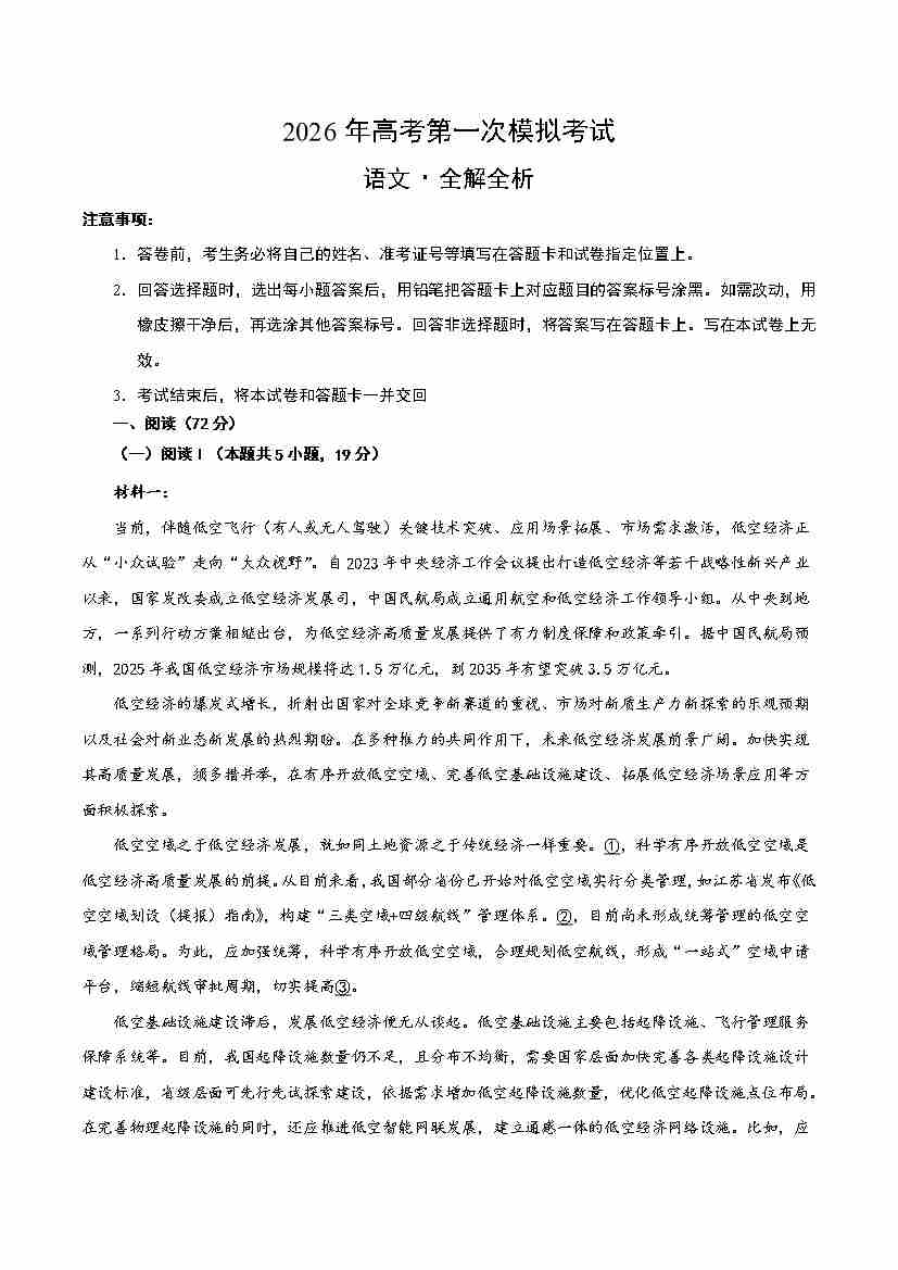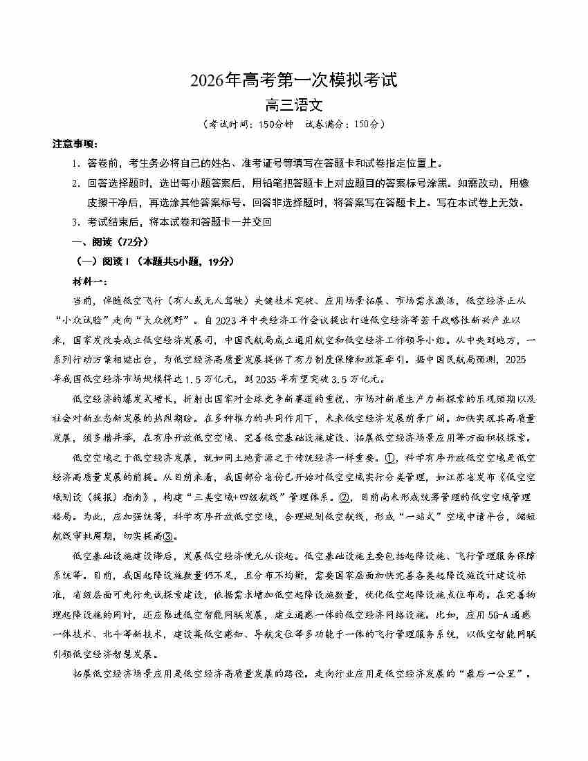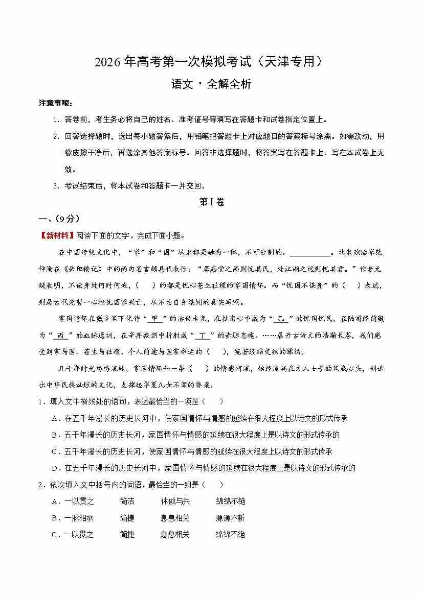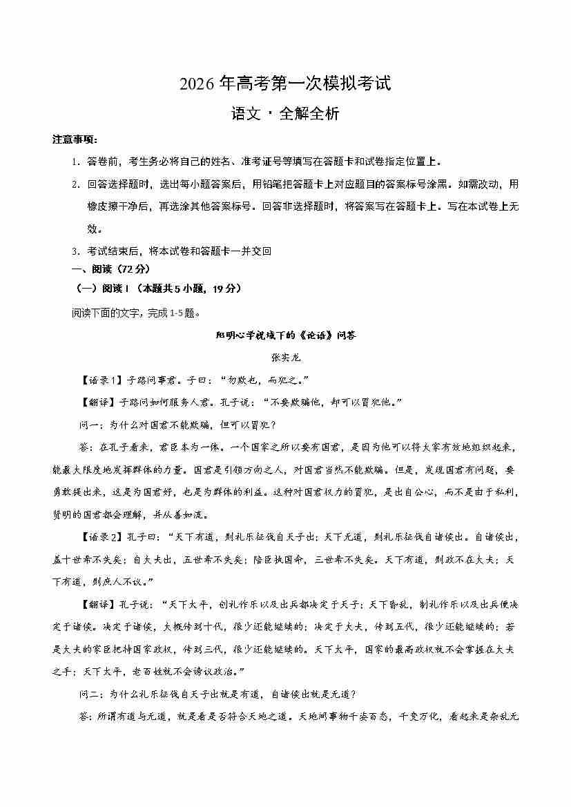 语文高考一模提分卷03(上海专用)(考试版A4))
