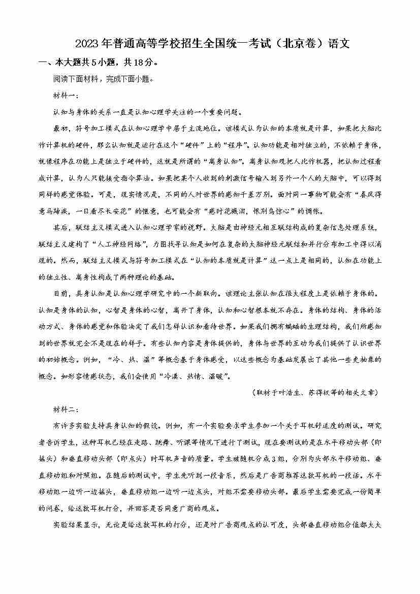 精品解析:2023年北京高考语文试题(解析版)
