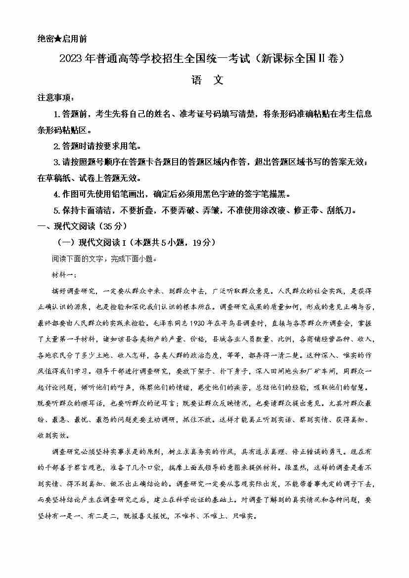 精品解析:2023年新高考全国Ⅱ卷语文真题(原卷版)