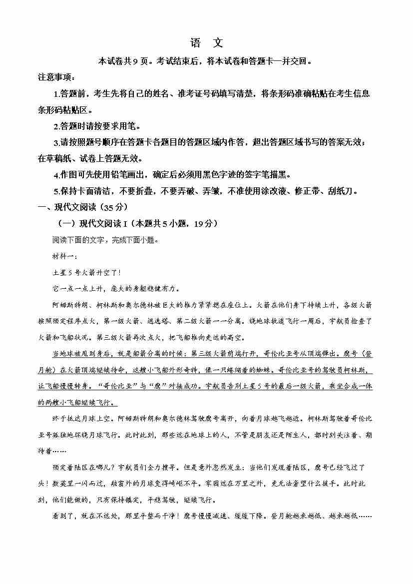 精品解析:2023年北京高考语文试题(原卷版)