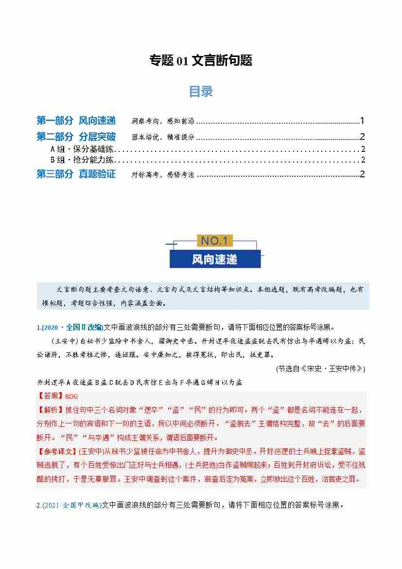 专题01 文言断句题(专题专练)(全国通用)(教师版)