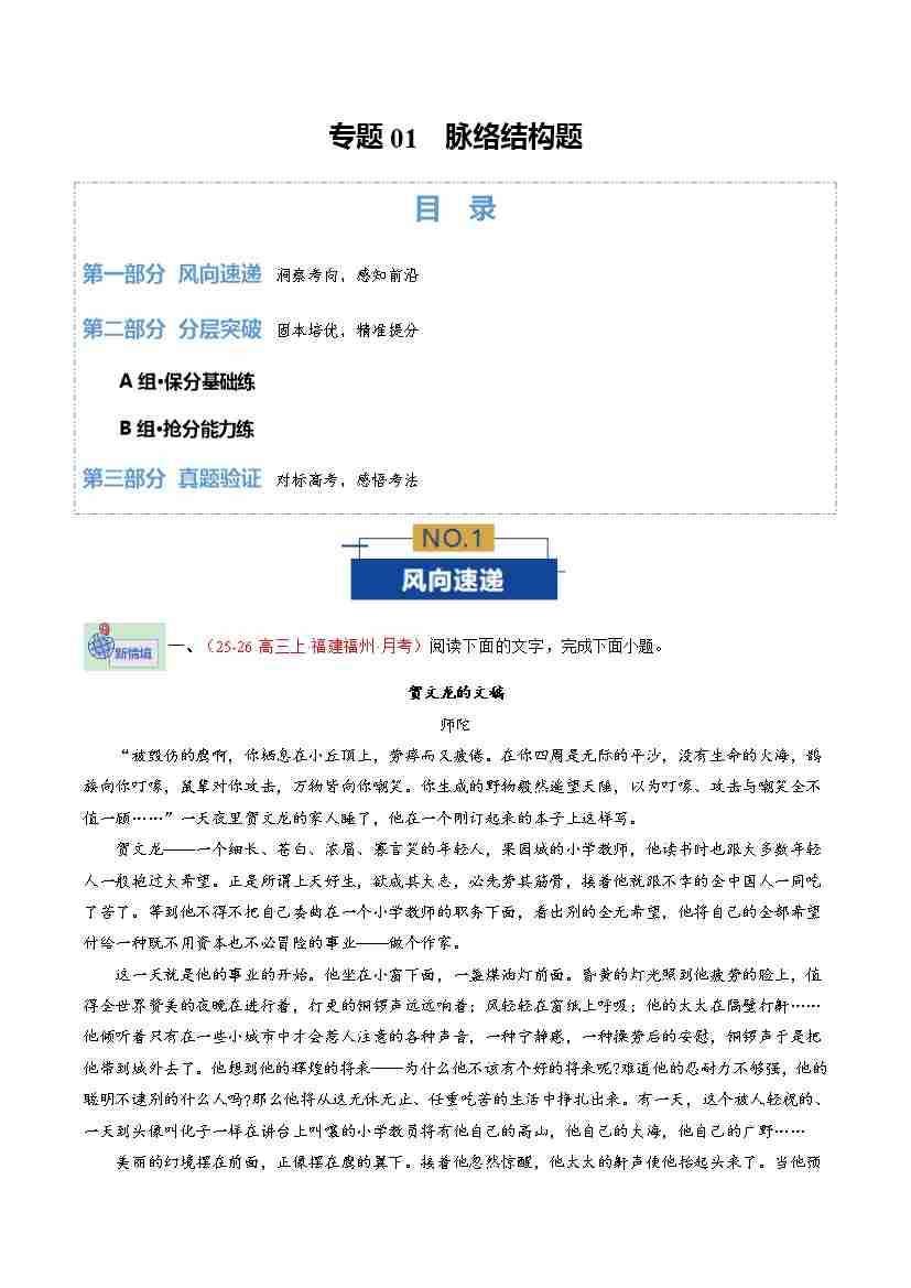 专题01 脉络结构题(专题专练)(全国通用)(学生版)