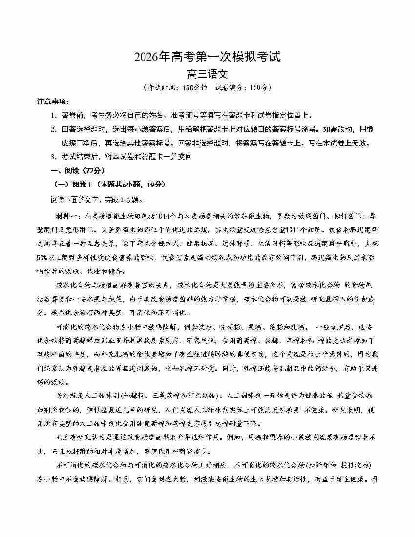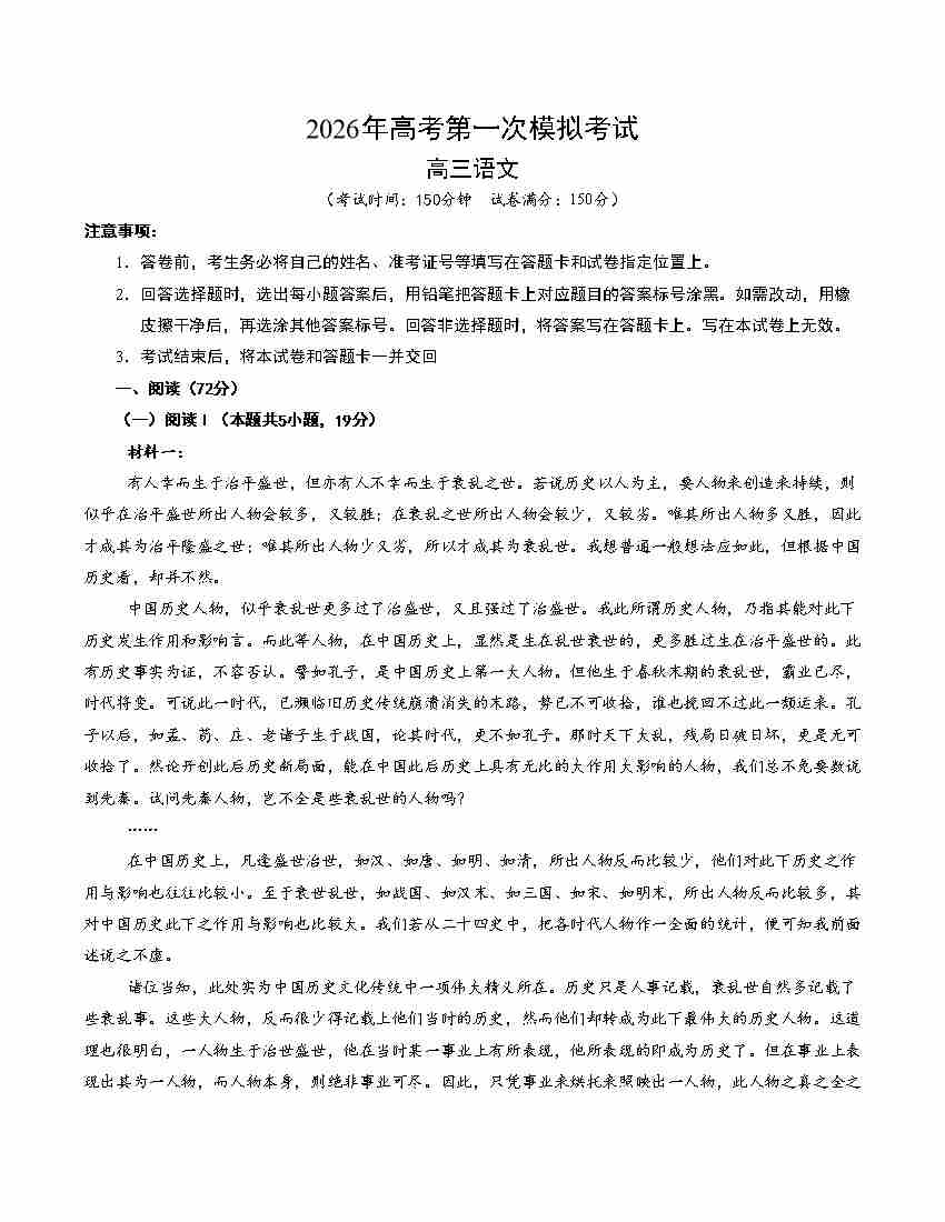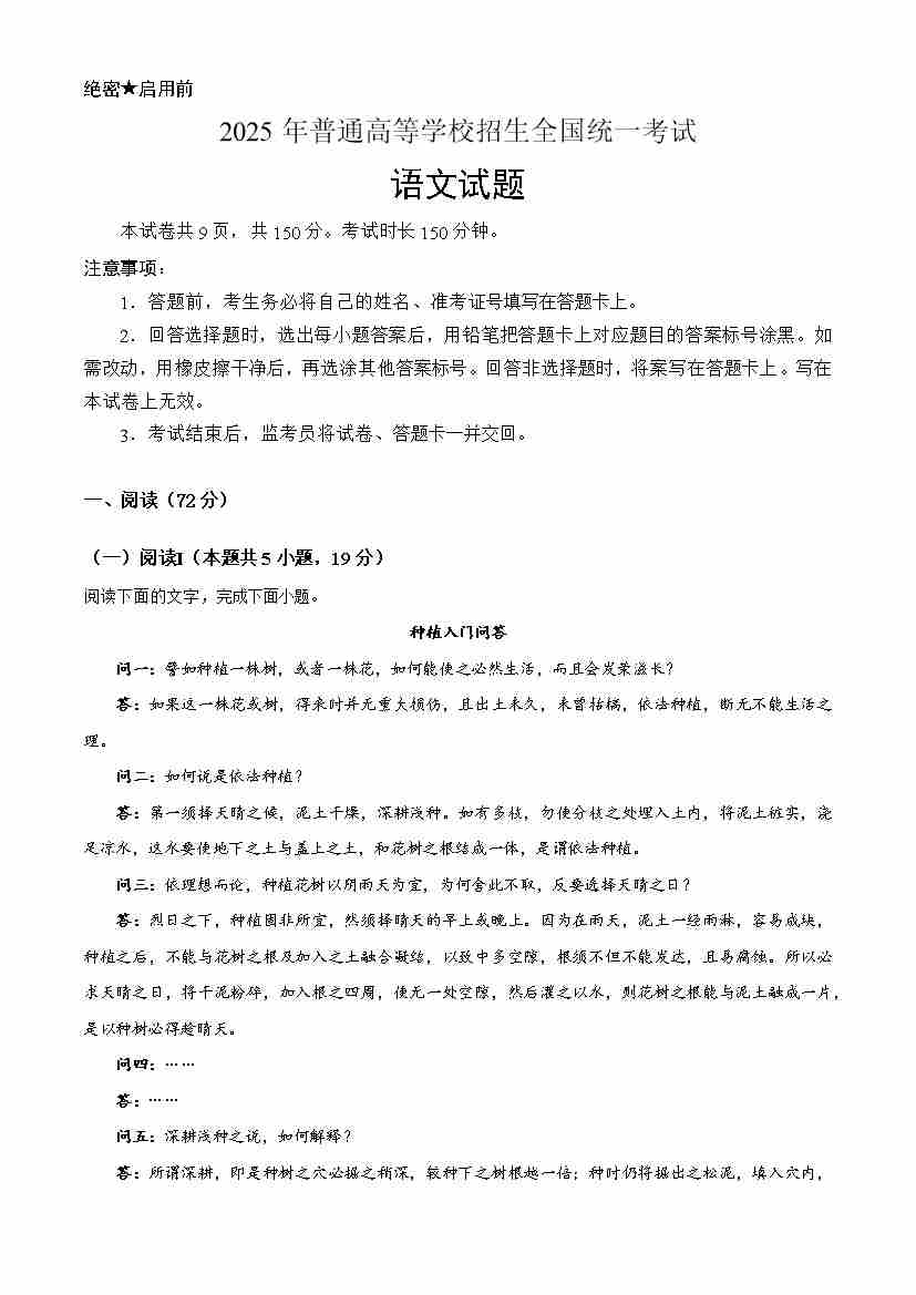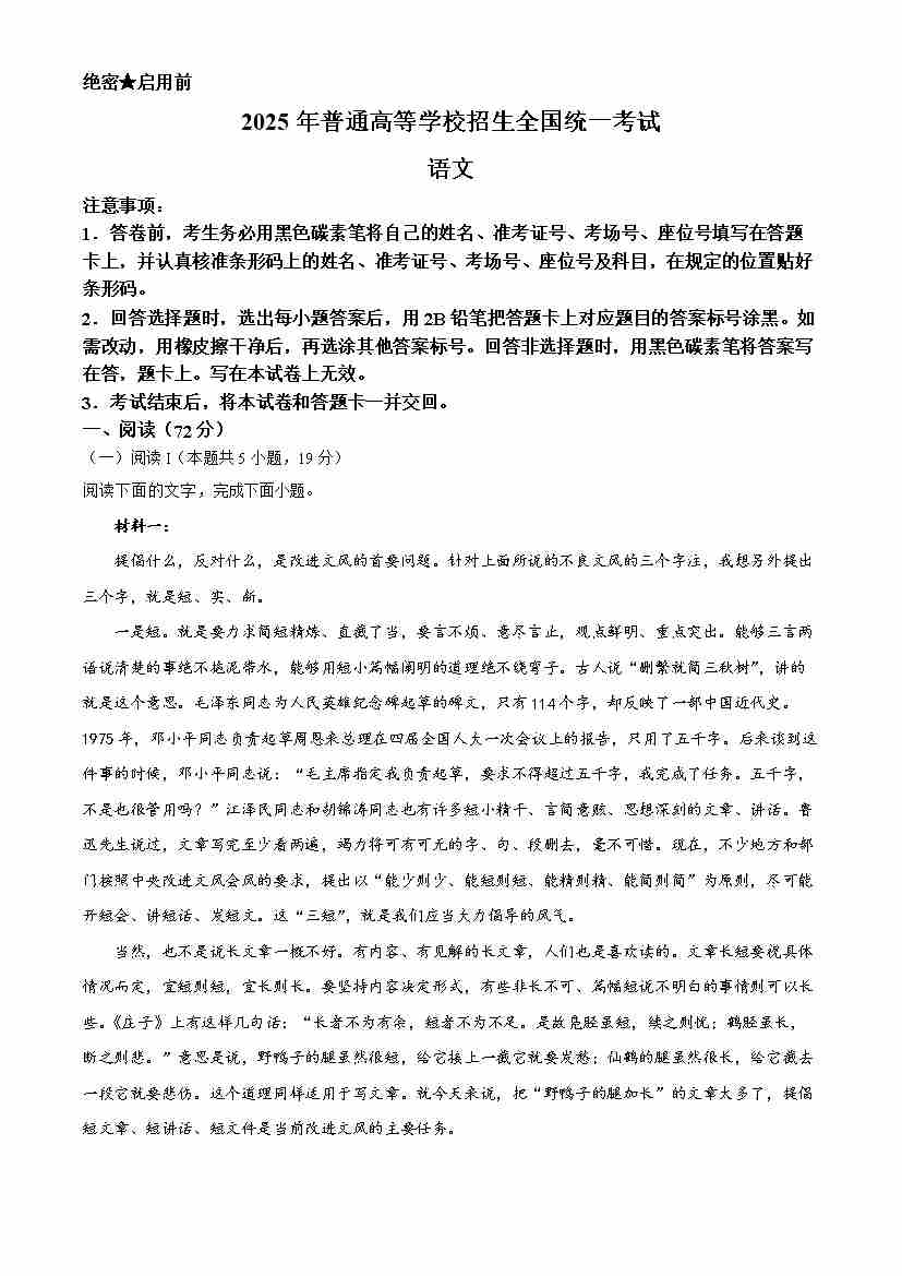 2025高考全国一卷语文(原卷版)