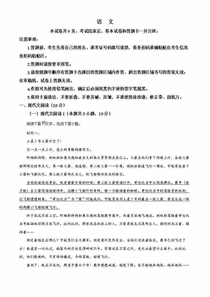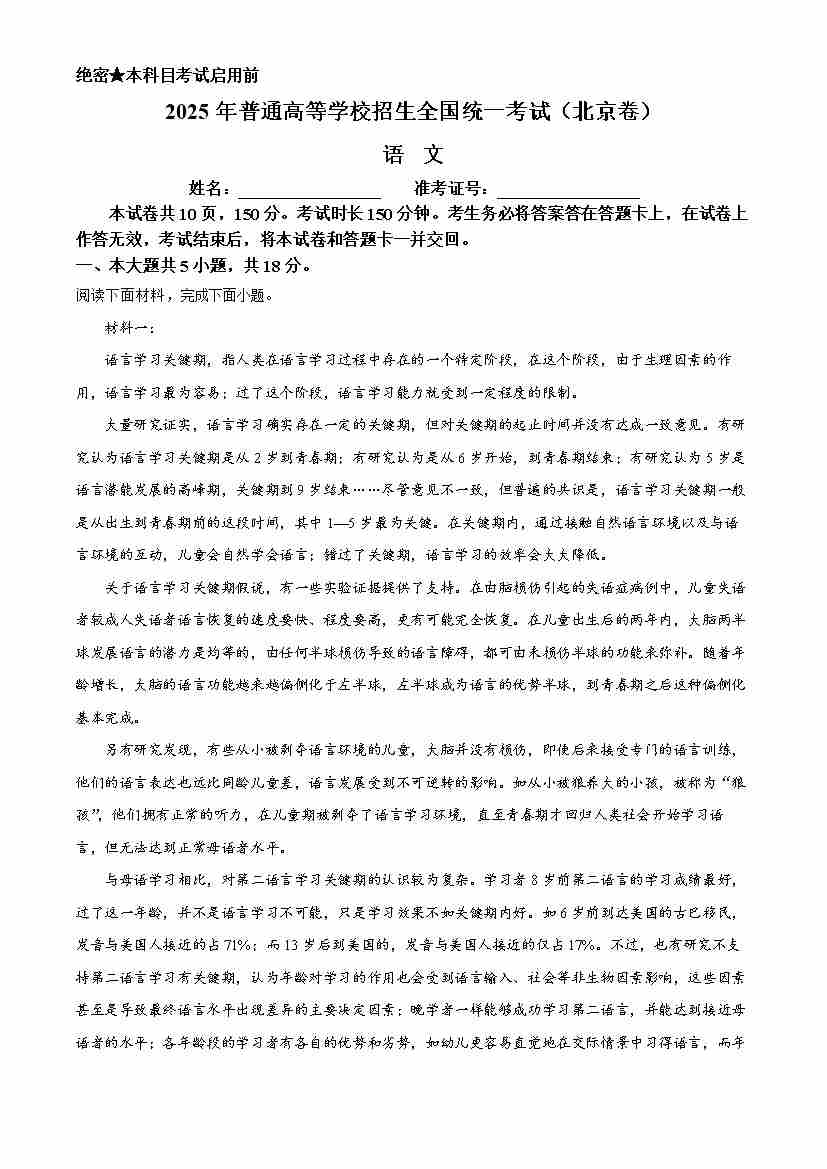 2025高考北京卷语文(原卷版)