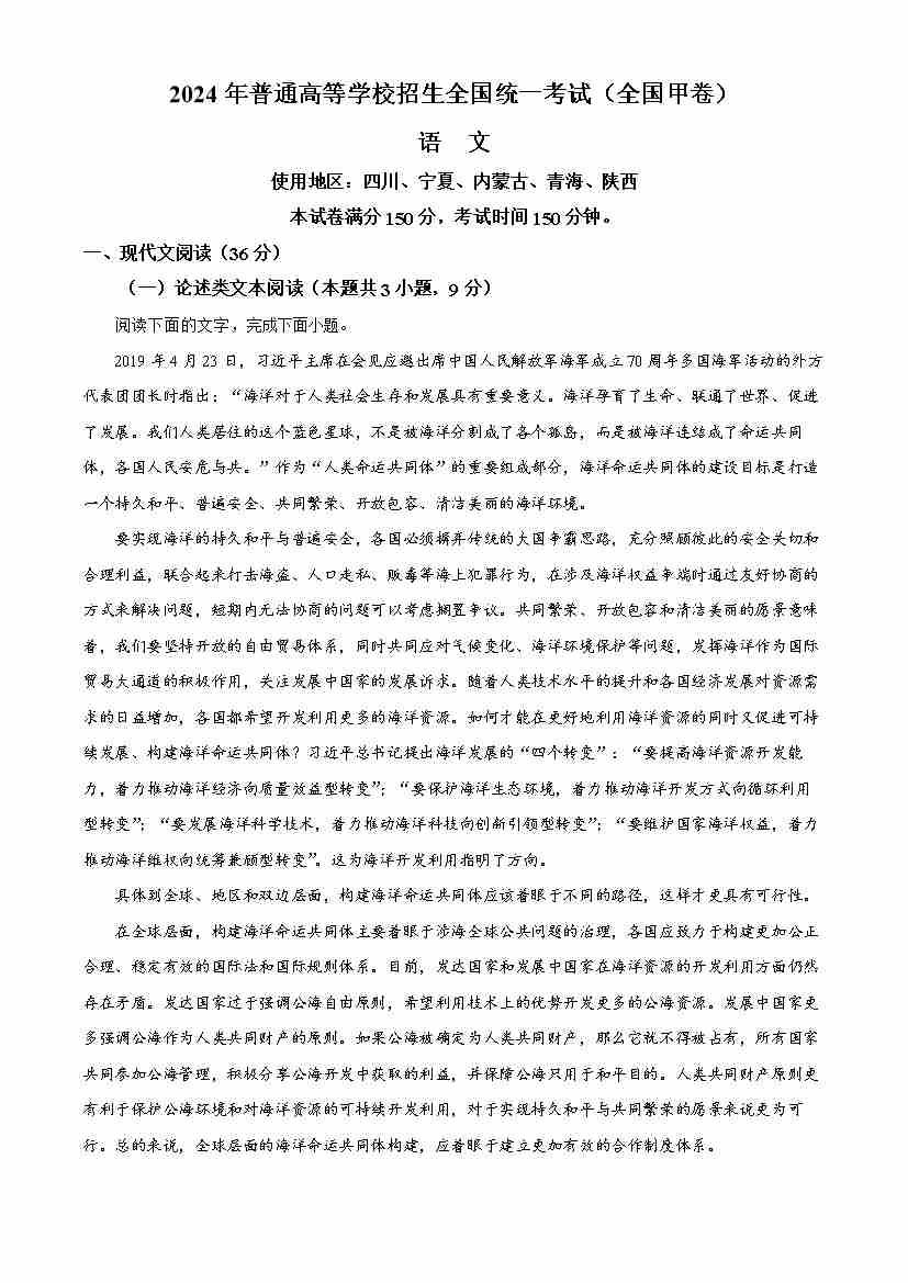 精品解析:2024年全国甲卷语文(原卷版)