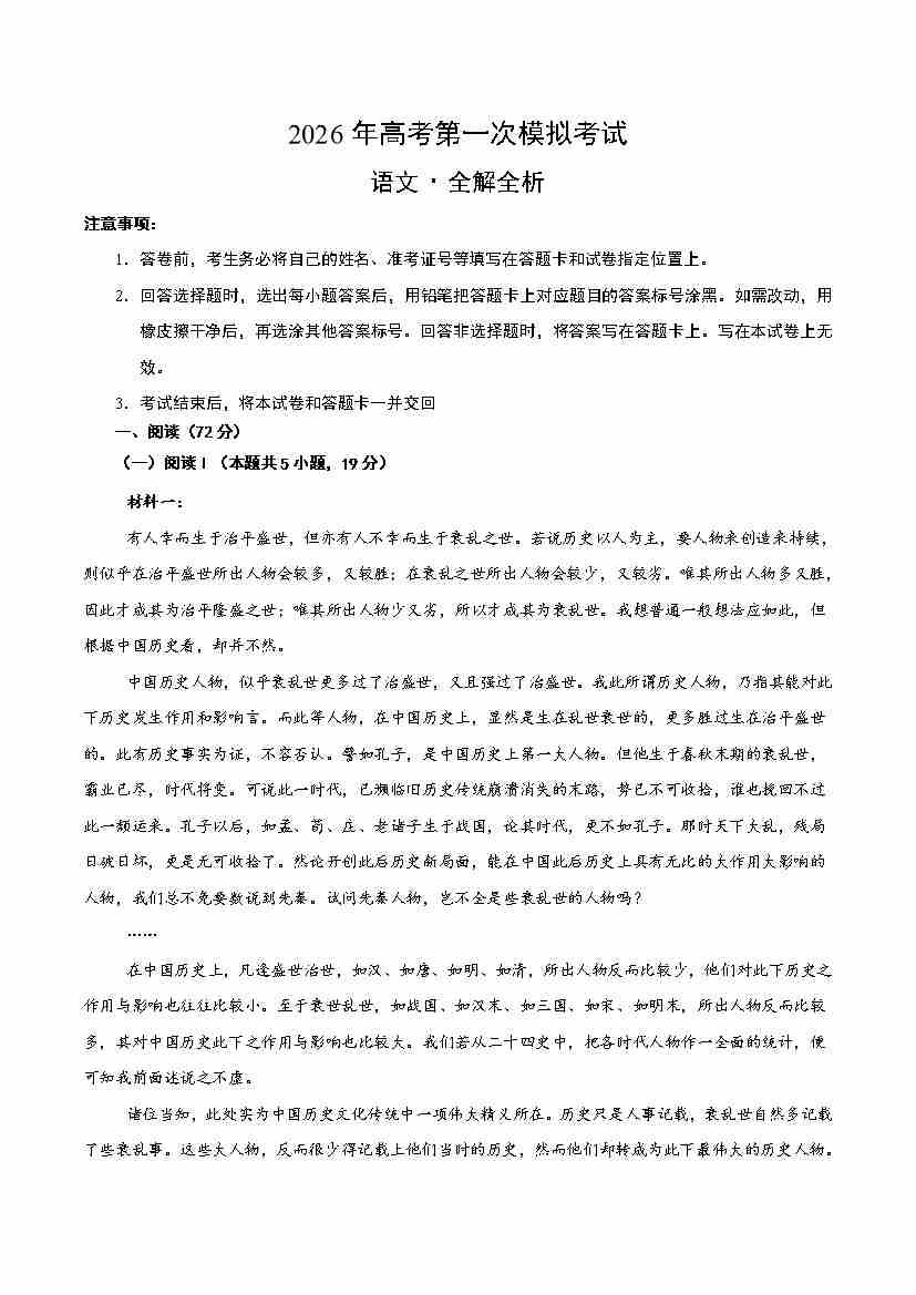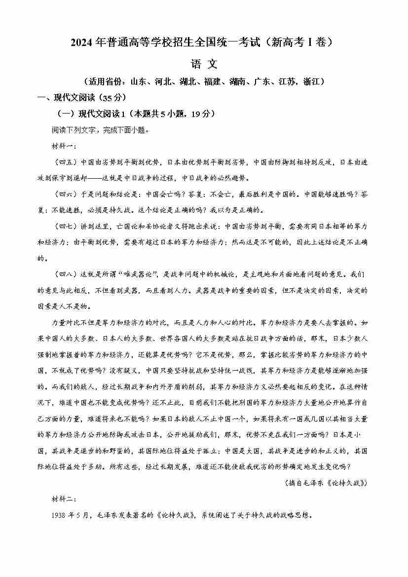 精品解析:2024年新高考Ⅰ语文(解析版)