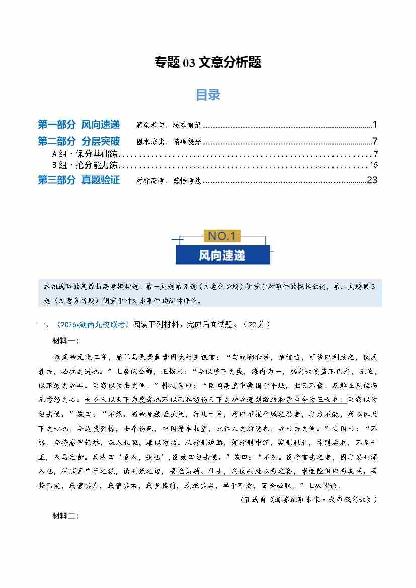 专题03 文意分析题(专题专练)(全国通用)(学生版)