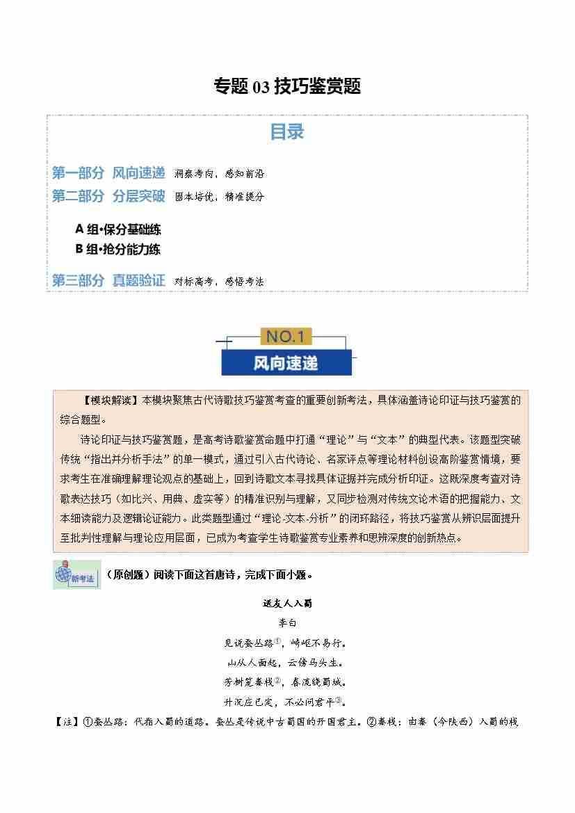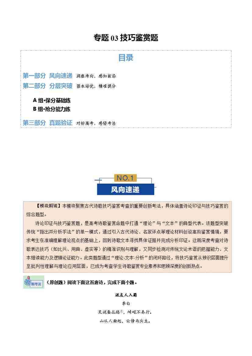 专题03 技巧鉴赏题(专题专练)(全国通用)(学生版)