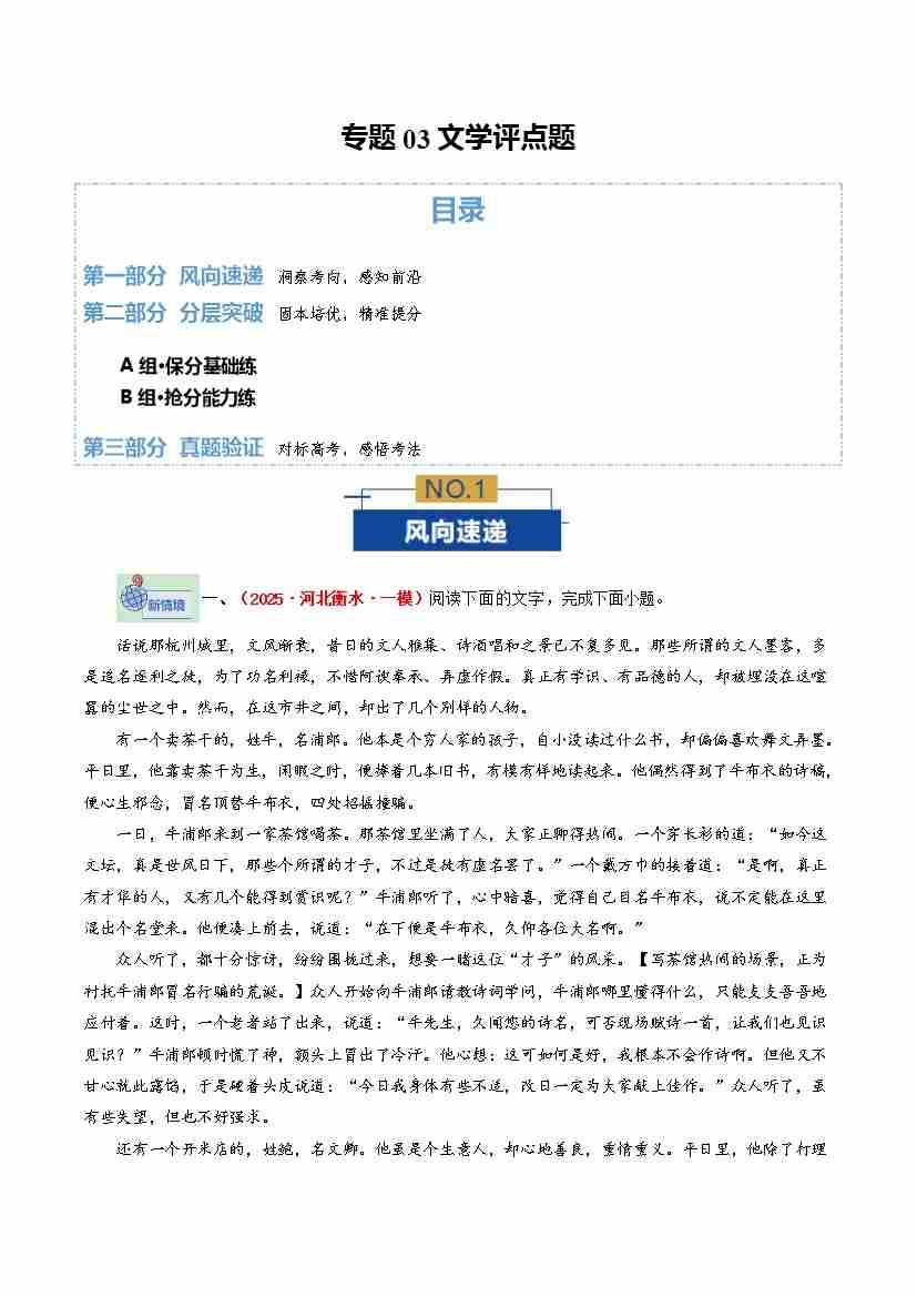 专题03 文学评点题(专题专练)(全国通用)(学生版)