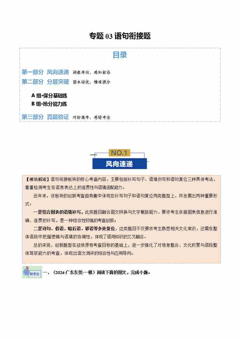 专题03 语句衔接题(专题专练)(全国通用)(学生版)