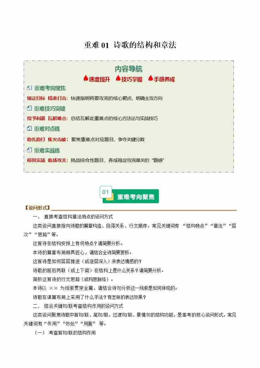 重难01 诗歌的结构和章法(重难专练)(全国通用)(学生版)