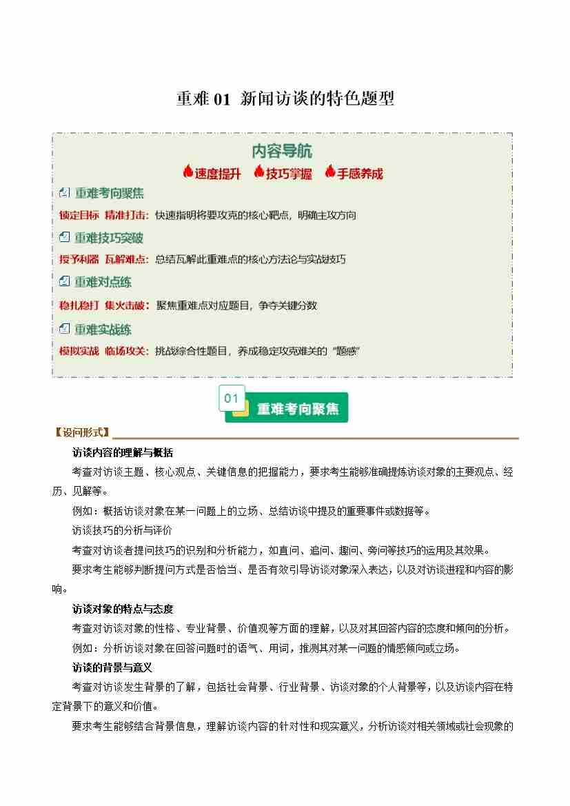 重难01新闻访谈的特色题型(重难专练)(全国通用)(学生版)