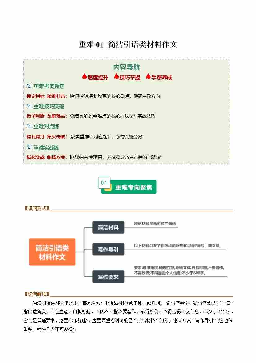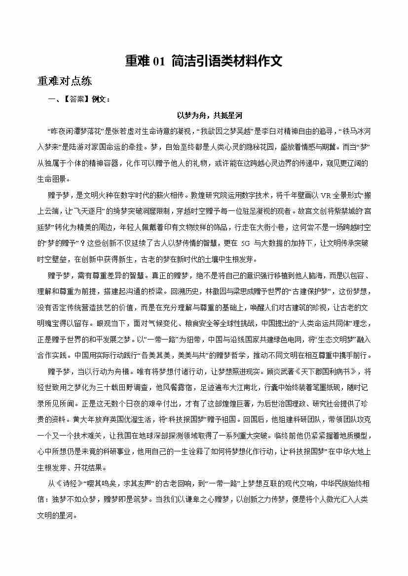 重难01简洁引语类材料作文(重难专练)(全国通用)(答案版)